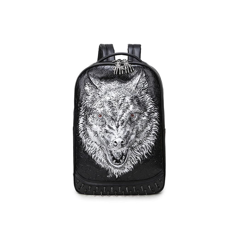 Unisex 3D Angry Wolf PU Leather Casual Laptop Rivet Fashion Backpack