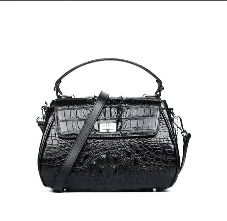 Bag: Women's Genuine Crocodile Leather Small Turn Lock Top Handle Shoulder Bag