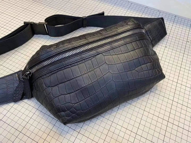 Unisex Crocodile Leather Waist Fanny Pack Hip Bum Bags