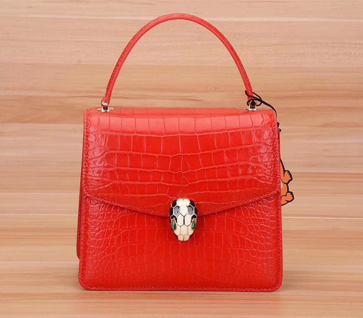 Borsa a tracolla da donna classica in vera pelle di coccodrillo con catena e patta