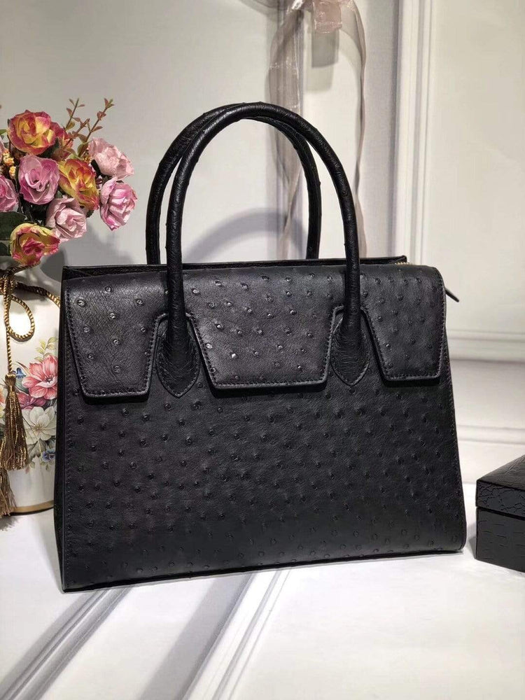 Borse a tracolla da donna in vera pelle di struzzo con patta e cerniera