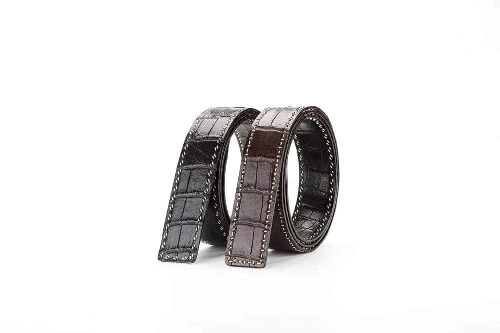 Cintura in vera pelle di coccodrillo con fibbia in acciaio inox