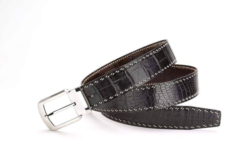 La nostra cintura in coccodrillo è un classico intramontabile e ogni uomo ben vestito dovrebbe possederne una. Di alta qualità, realizzata a mano con accessori in metallo, foderata in pelle di vitello pieno fiore.