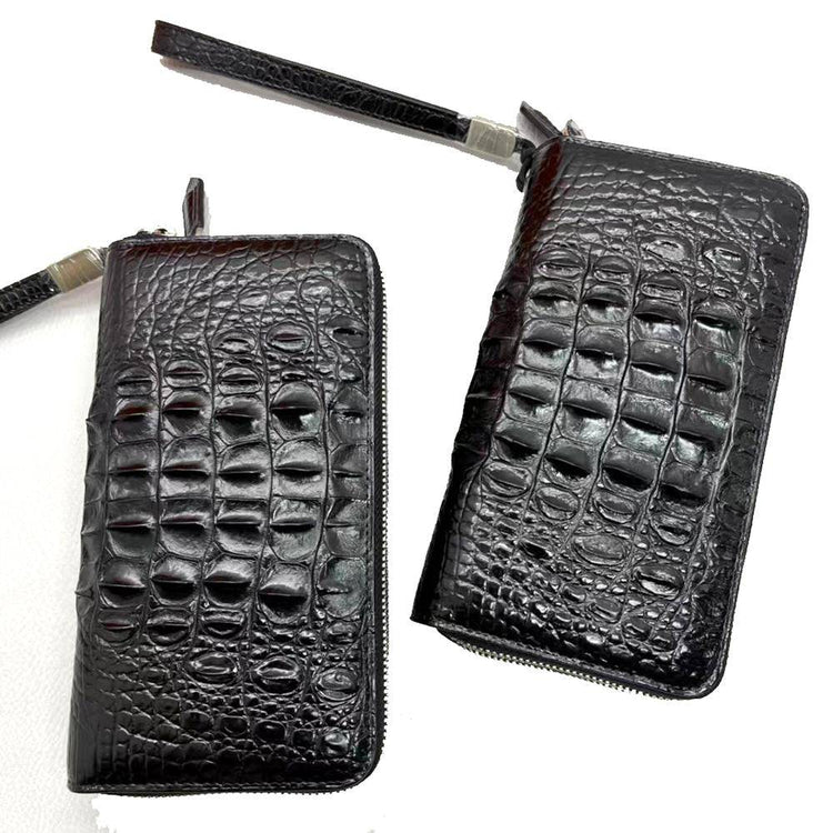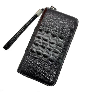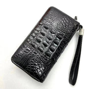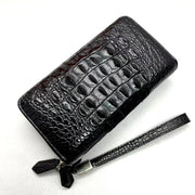 Nome:Portafoglio Grande con Zip a Tutto Giro in Vera Pelle di Coccodrillo con Design a Spina Dorsale