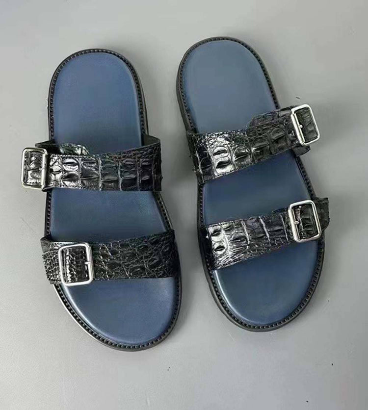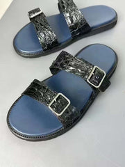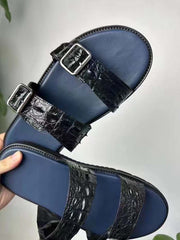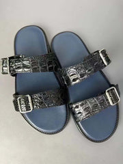 Pantofole nere in pelle di coccodrillo Crocodile Shoes