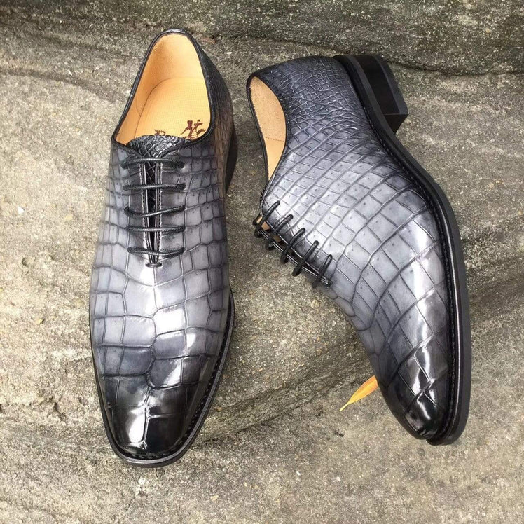 Scarpe da Uomo in Coccodrillo, Scarpe in Pelle di Coccodrillo Grigie, Scarpe Stringate, Suola Goodyear