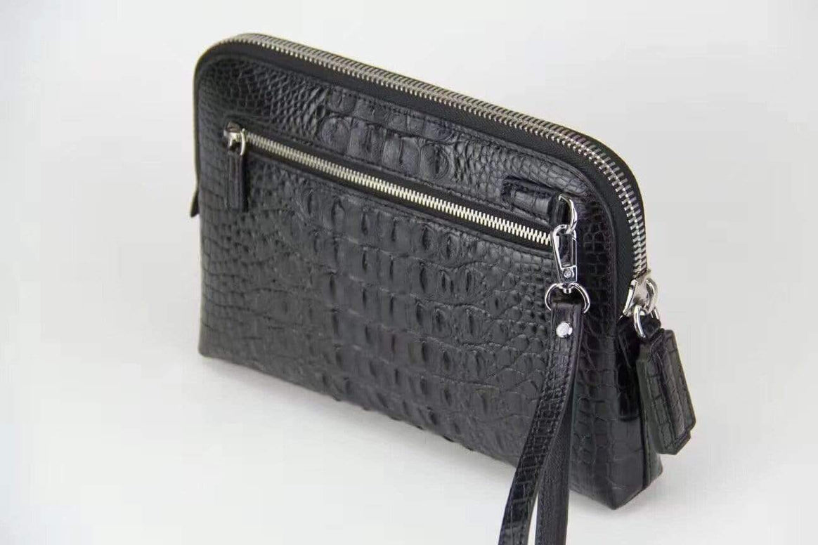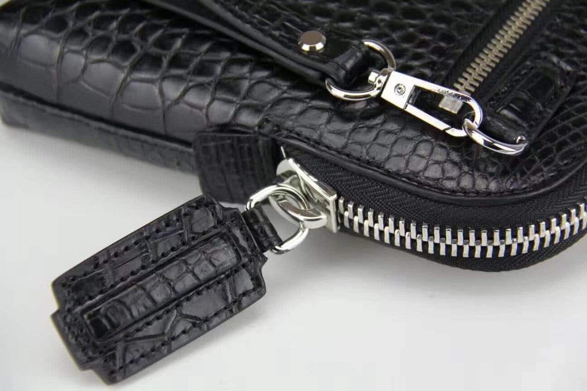 Super imported Imported genuine crocodile leather with chunky silver tone hardware.