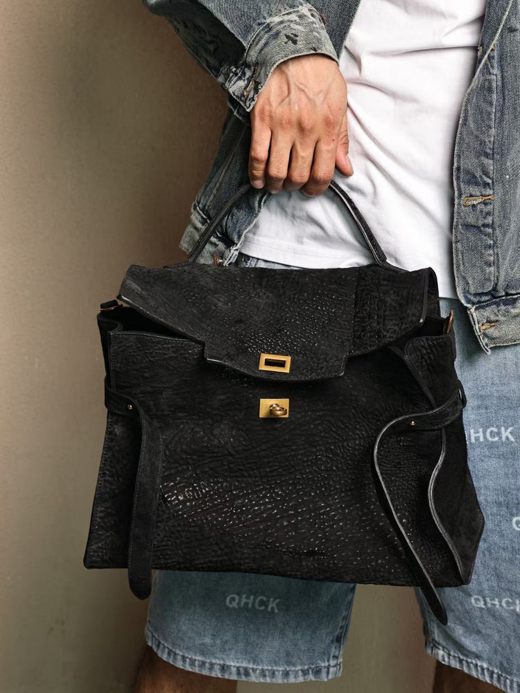 Genine Washed Cordovan Leather Top Handle Briefcase Bag