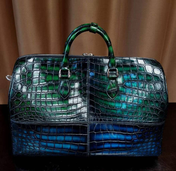 Unisex Vintage Green / Blue Crocodile Leather Travel Duffel Bag