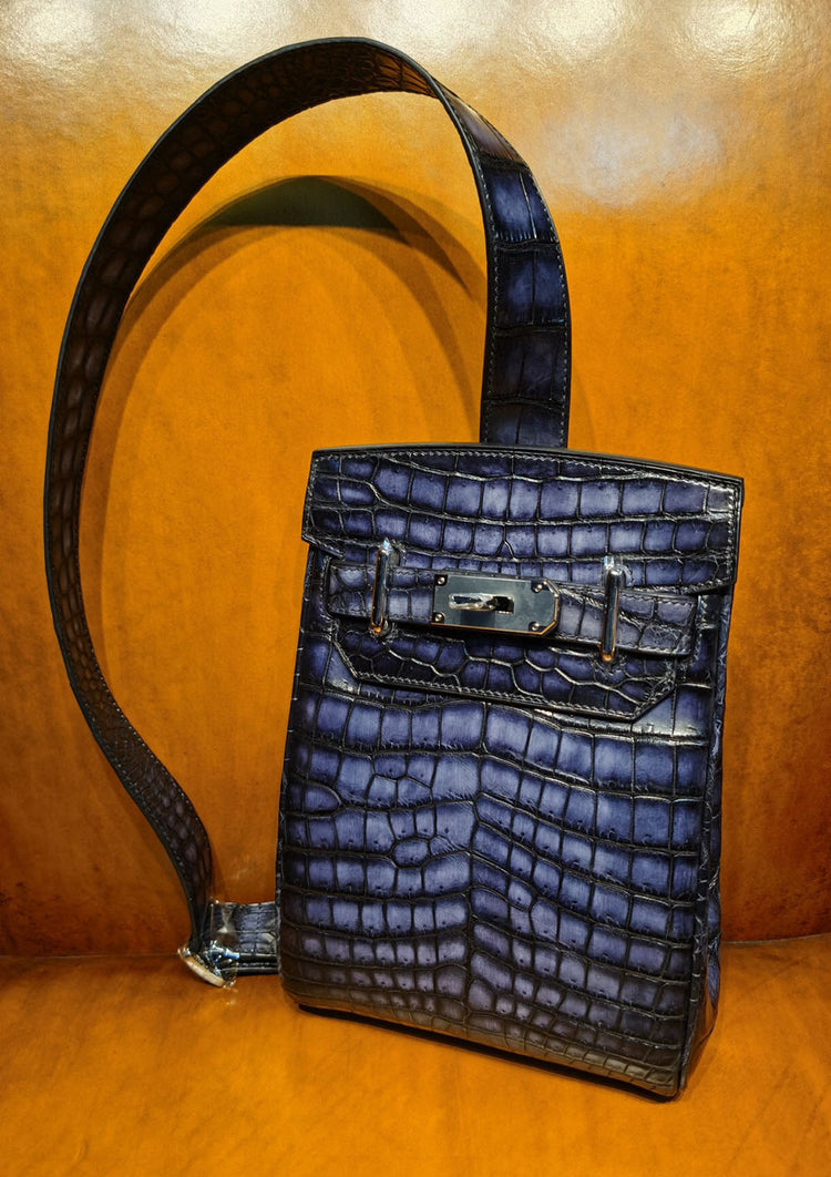 Name: Vintage Crocodile Leather Sling Chest Shoulder Cross body Bag