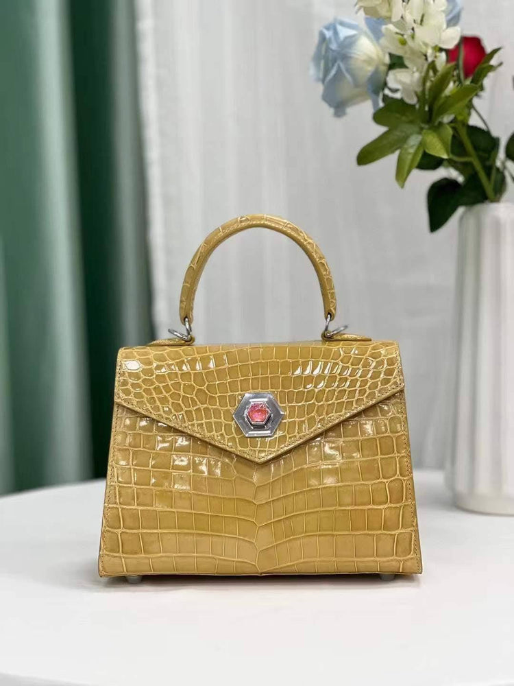- Exotic beautiful shiny Niloticus crocodile skin belly leather with silver -tone hardware.