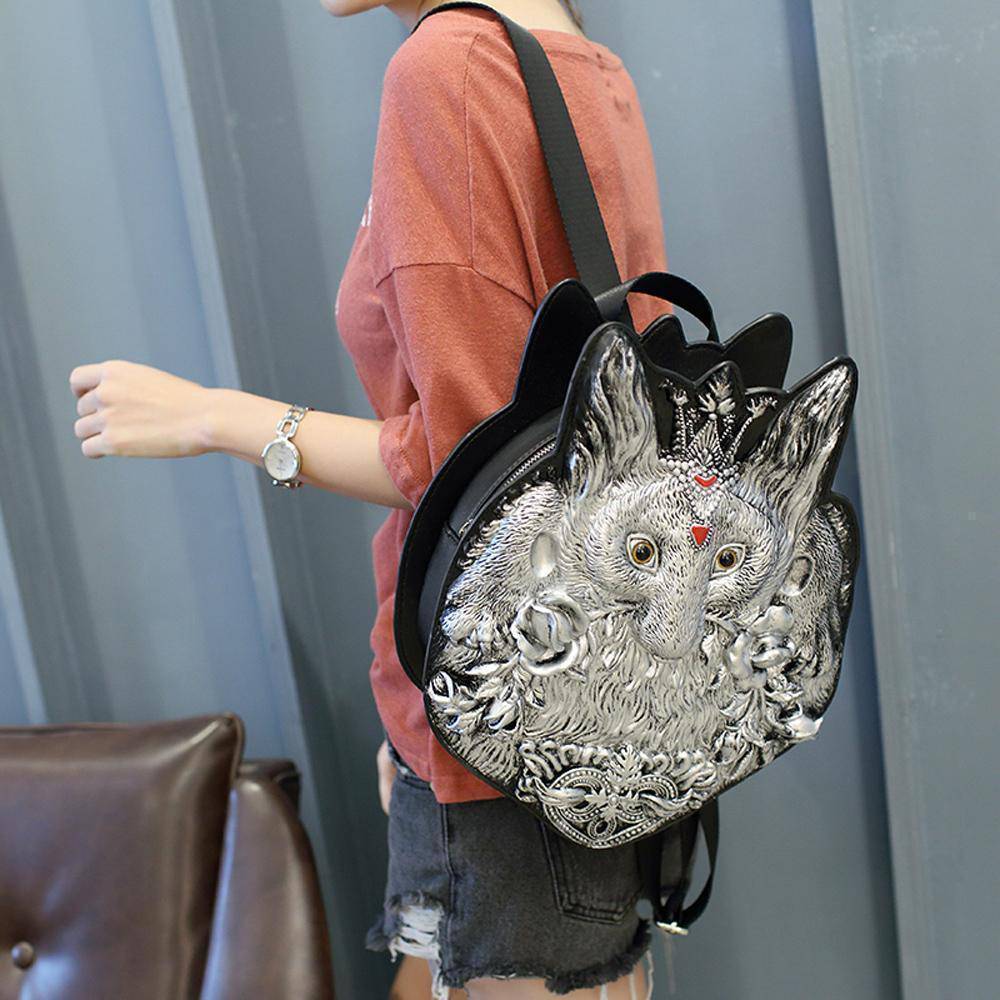 3D Backpack Fashion 3D Ladie's Fox Modeling Casual Backpack Bags