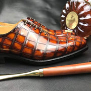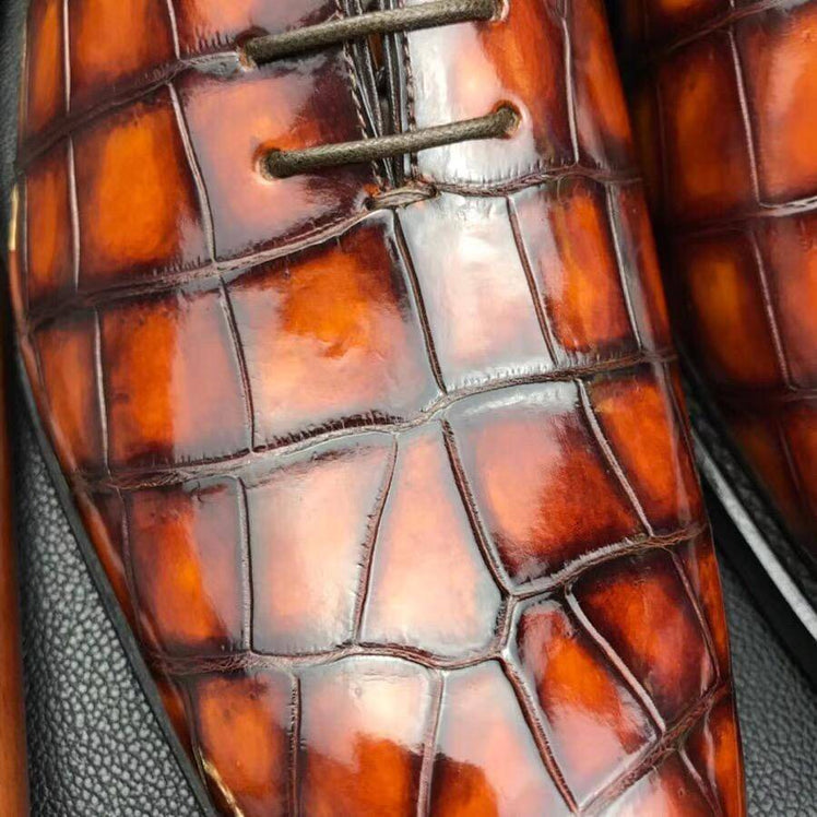 Crocodile Shoes Burnished Tan Derby Crocodile Belly Leather Lace-Up Shoes For Men