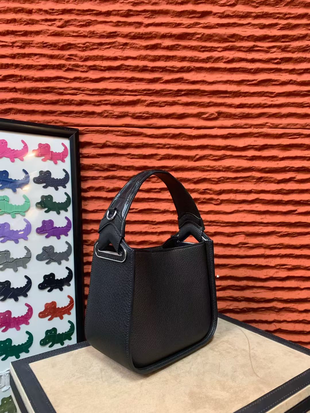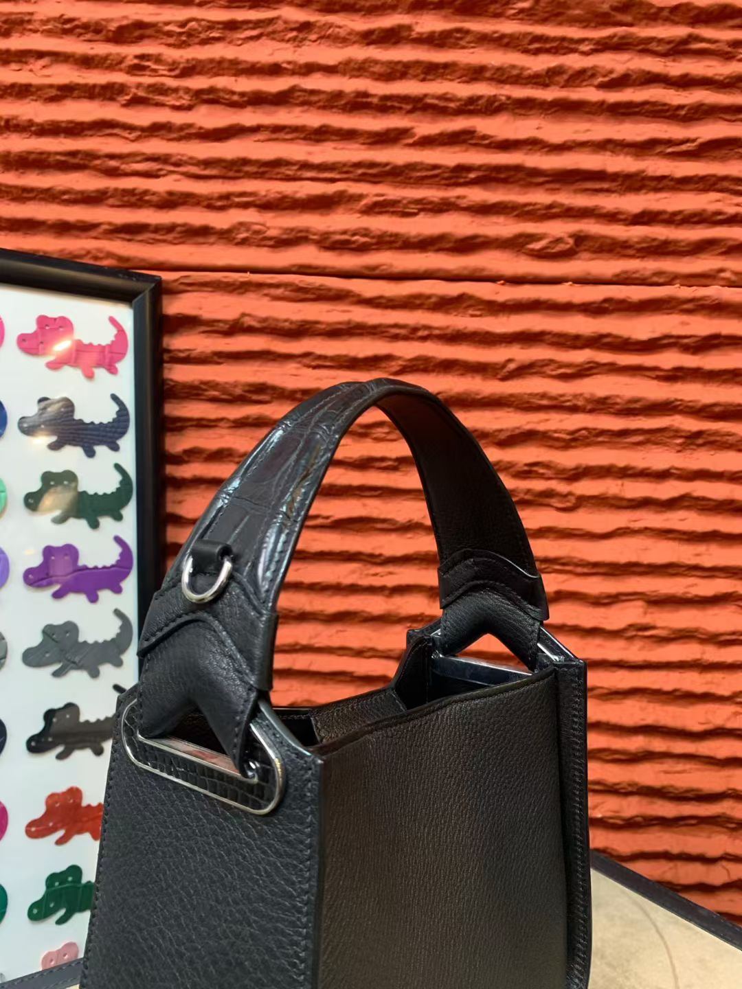 Genuine Python Skin Leather Underarm Cross Body Handle Bag Black
