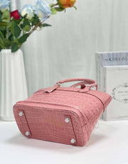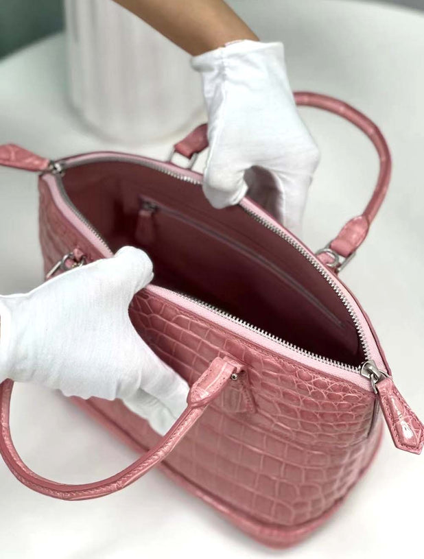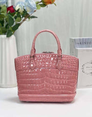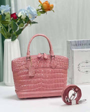 Women Shiny Crocodile Leather Top Handle Satchel Bag Rose Sakuras