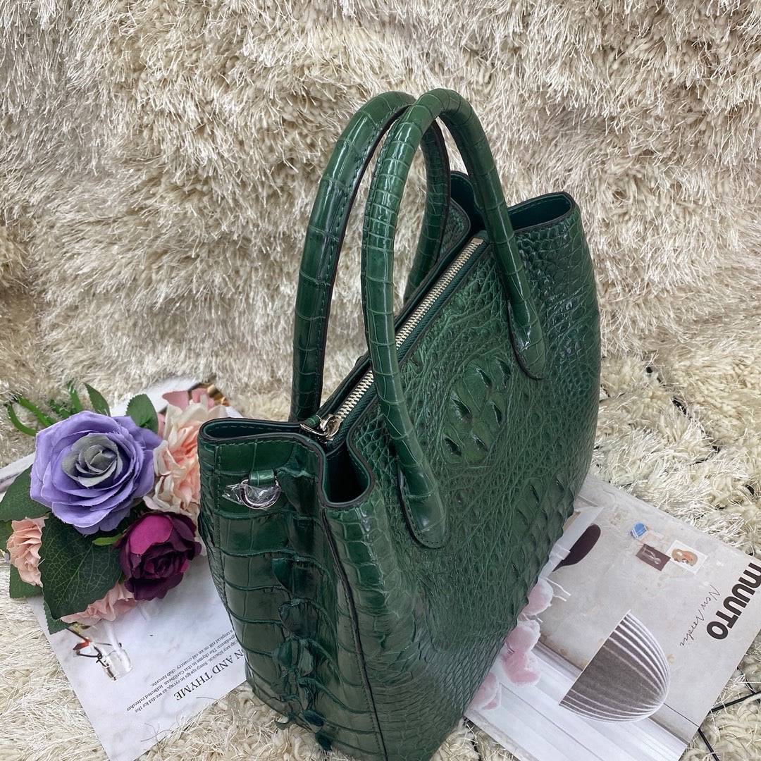 Womens Crocodile Skin Leather Satchel Bag 30cm Dark Green