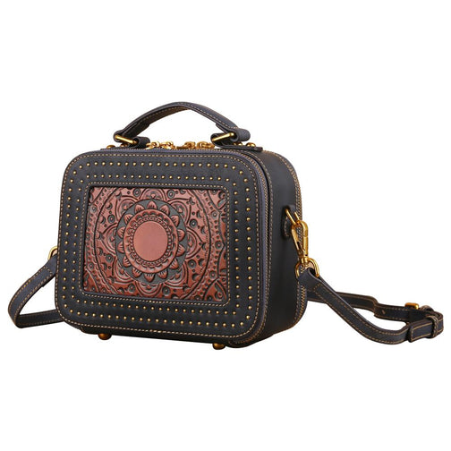 Womens Classic Studded Mini Square Top Handle Cross Body Shoulder Box Bag