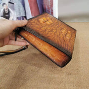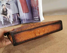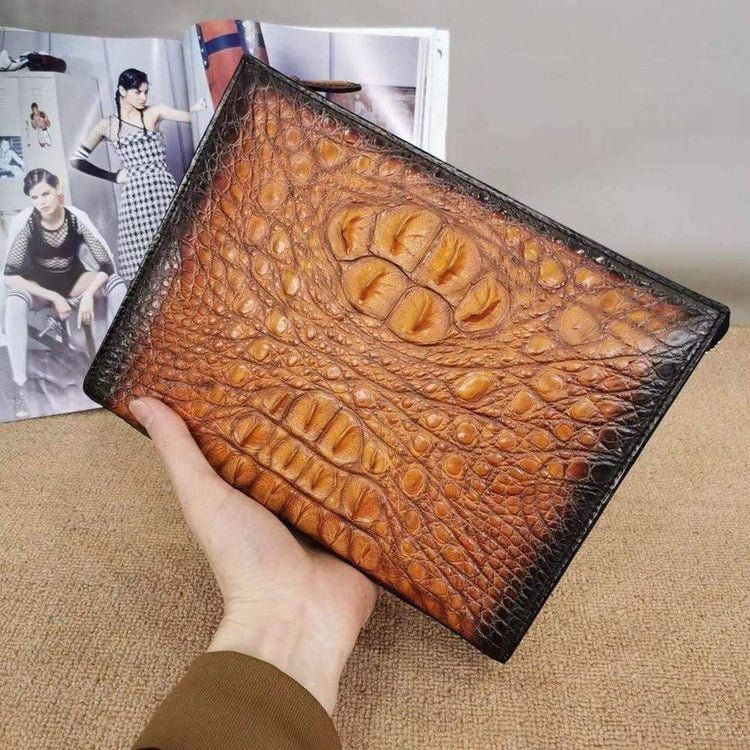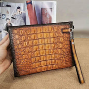 Mens Classic Vintage Genuine Crocodile Leather Zip Clutch Bag