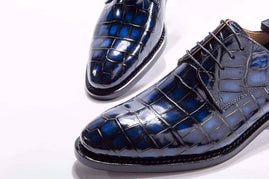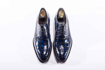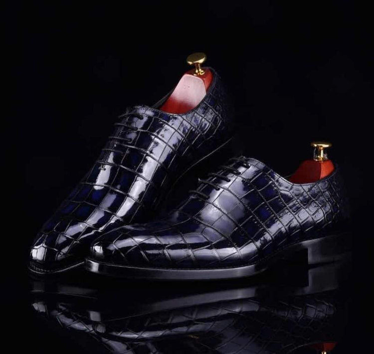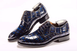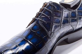 Preorder Handmade Men Crocodile Leather Lace-Up Shoes Dark Blue