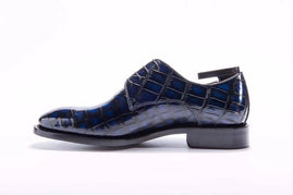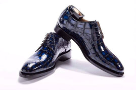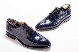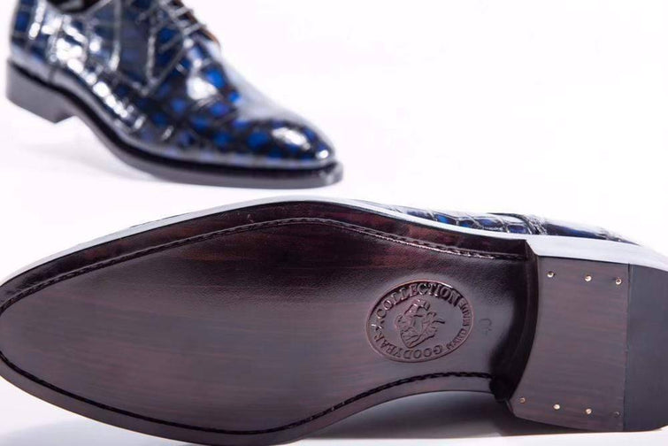 Goodyear Lace up crocodile leather shoes in dark blue color, leather sole and full genuine calfskin leather lining.