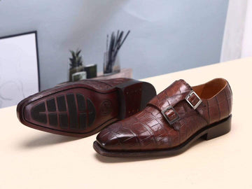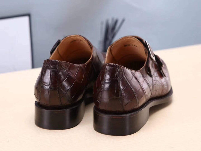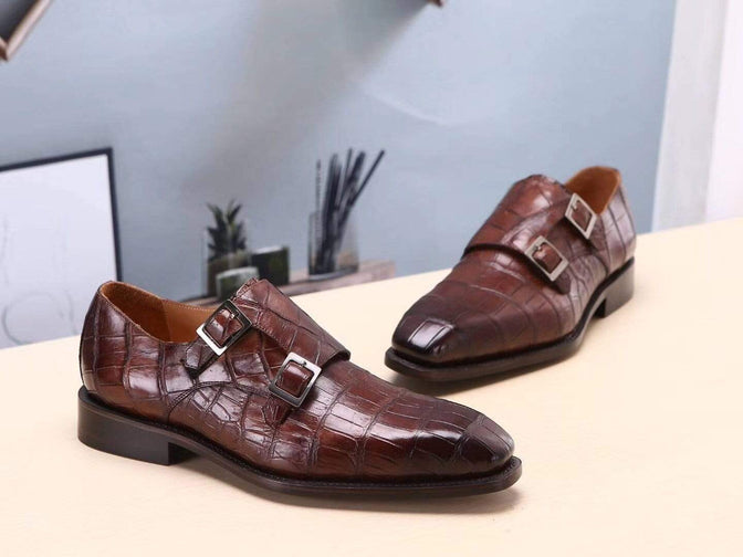 Crocodile Shoes Brown Mens Shoes Crocodile Belly Leather Monk Double Strap Dress Shoes,Goodyear Sole