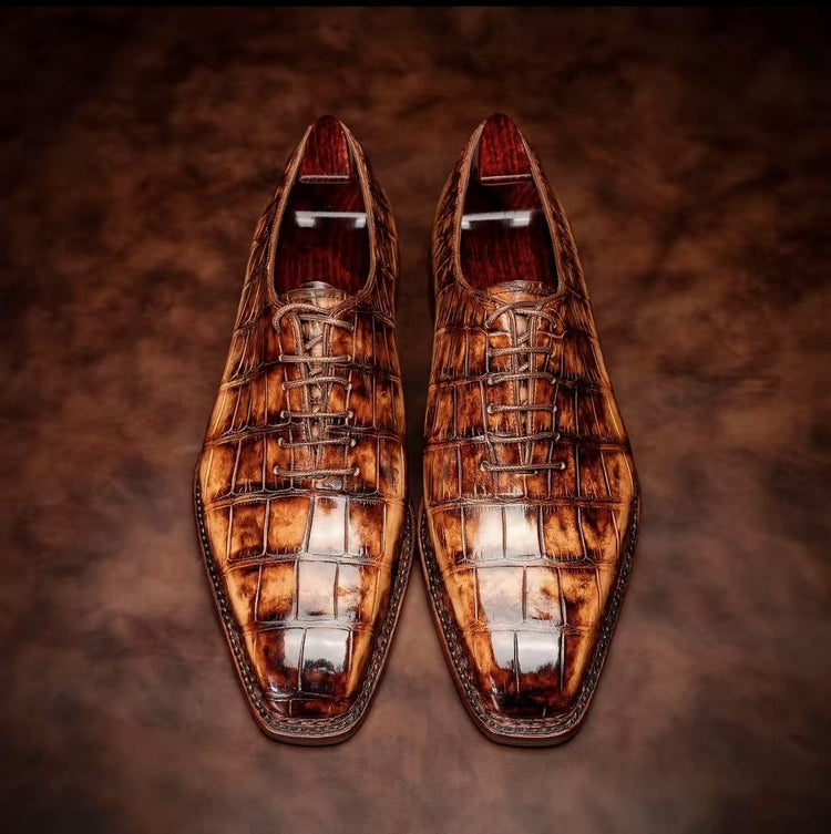 - Name:Crocodile Shoes Crocodile Leather Norwegian Sewn Lace Up Dress Shoes Vintage Brown