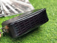 Name:Mens Clutch Bags | Crocodile Skin Leather Zip Pouch Black