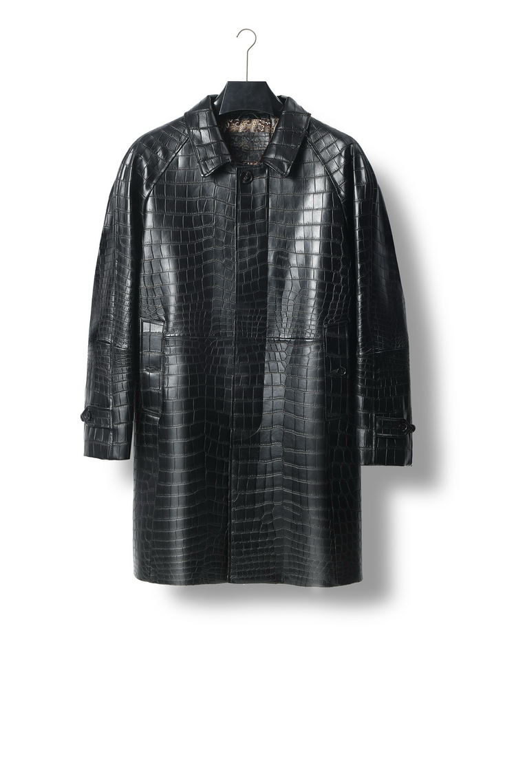 Genuine crocodile skin belly leather  windbreaker are timeless. It can give you the unique look that can best display your personality. This long Nile crocodile skin leather windbreaker are in stock .Also can custom made to order if the stock size are not fit you .