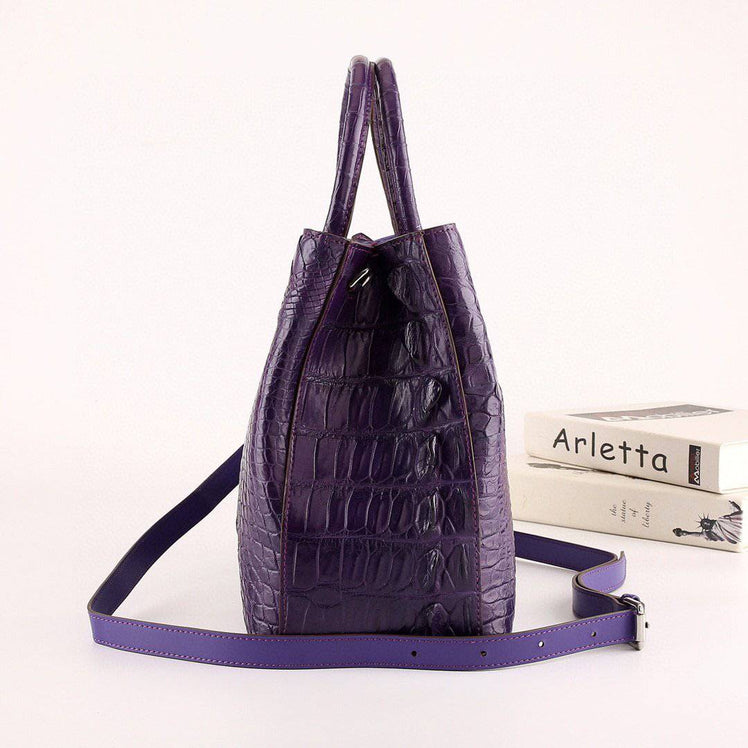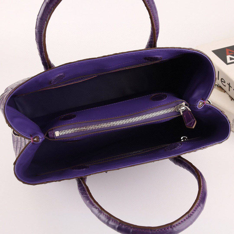 Name: Womens Genuine Crocodile Leather Top Handle Satchel Handbag Purple