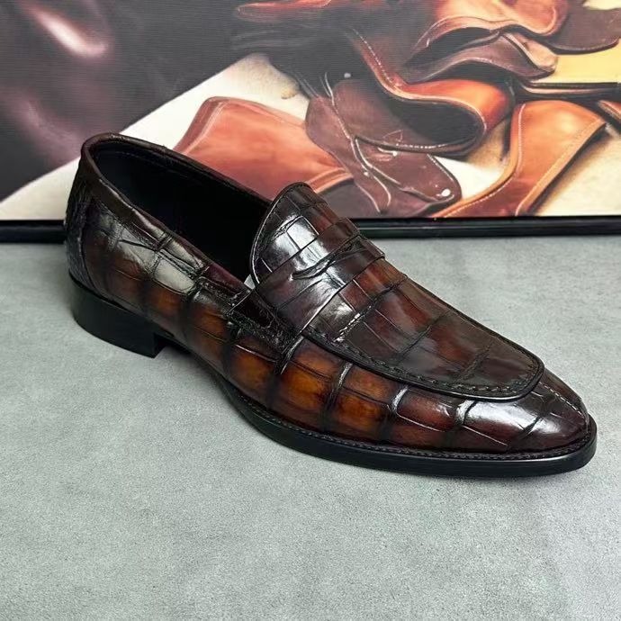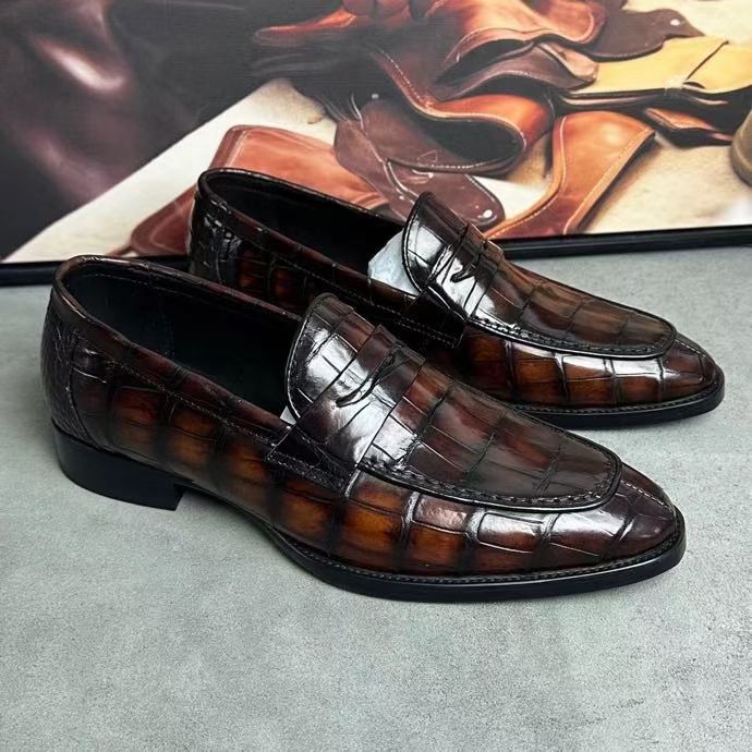 Giày da cá sấu nam phong cách cổ điển, da cá sấu thật, may kiểu Na Uy, buộc dây, giày tây màu đen (Copy)