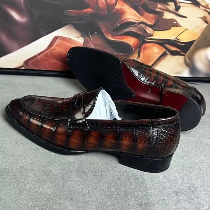 - Thân giày: Da bụng cá sấu thật