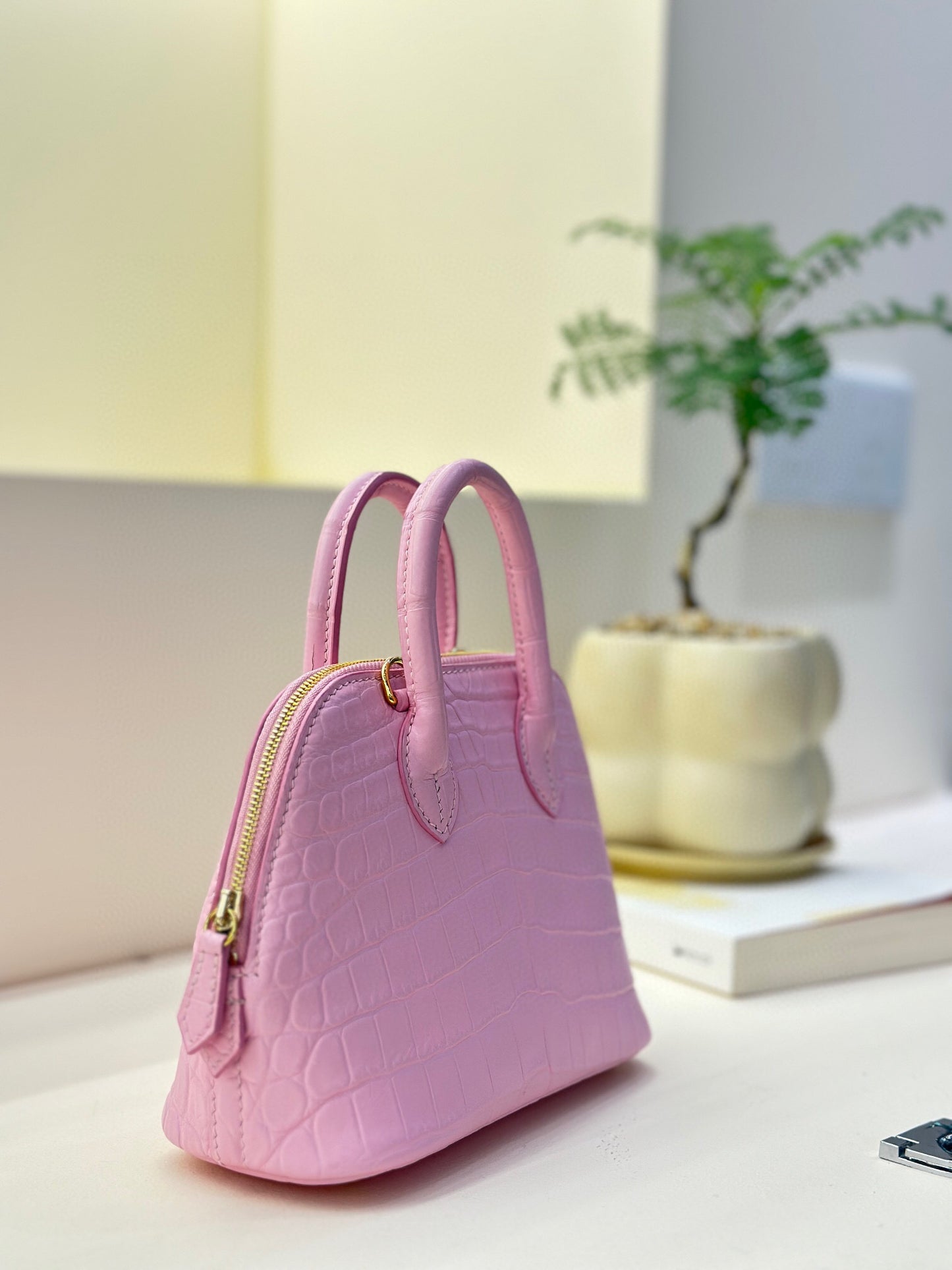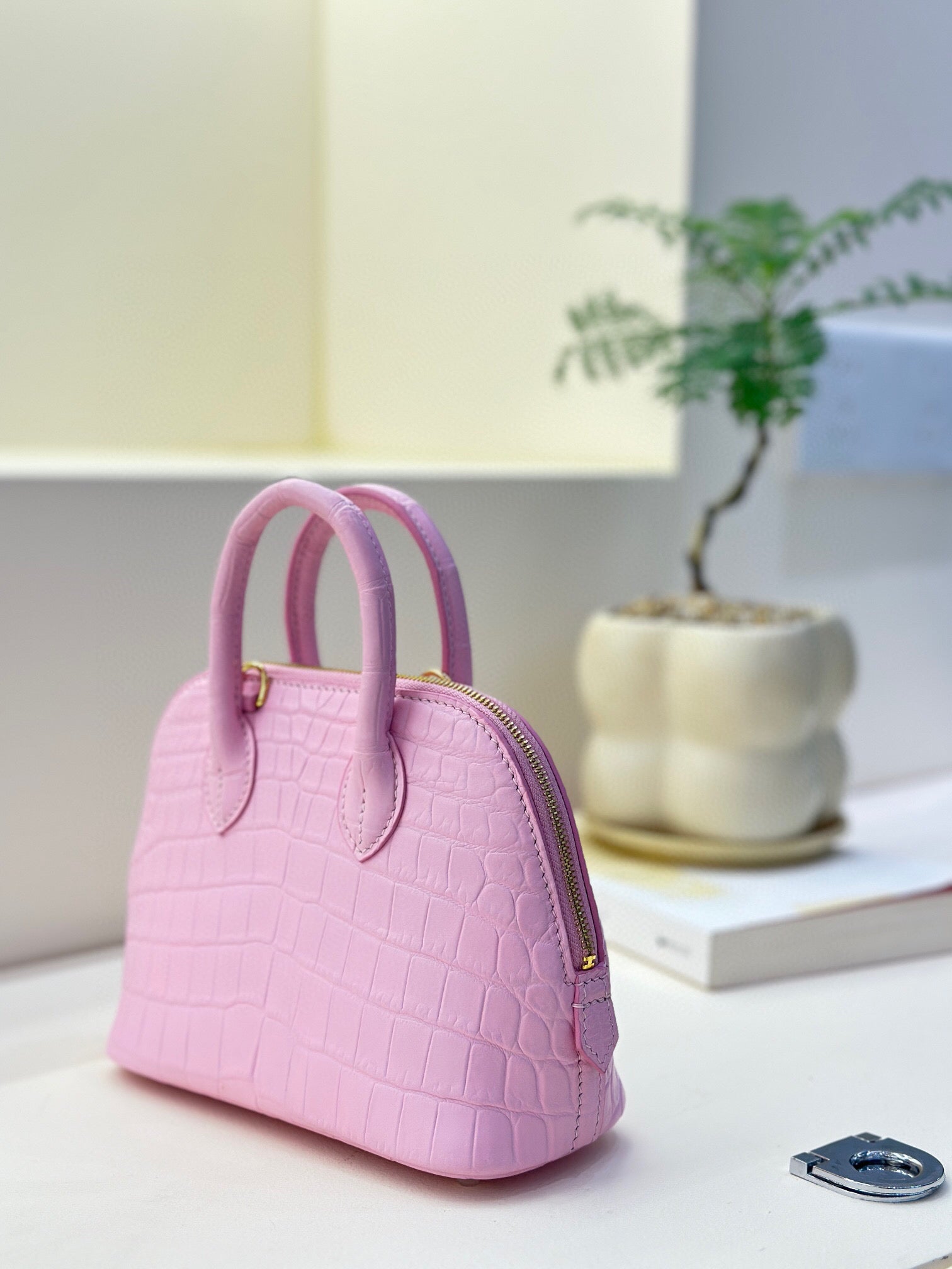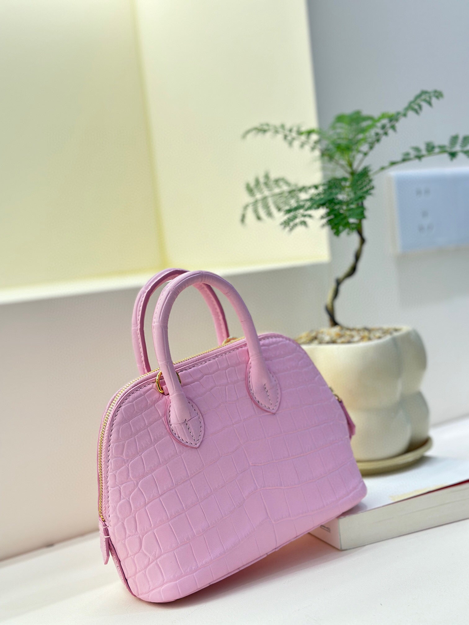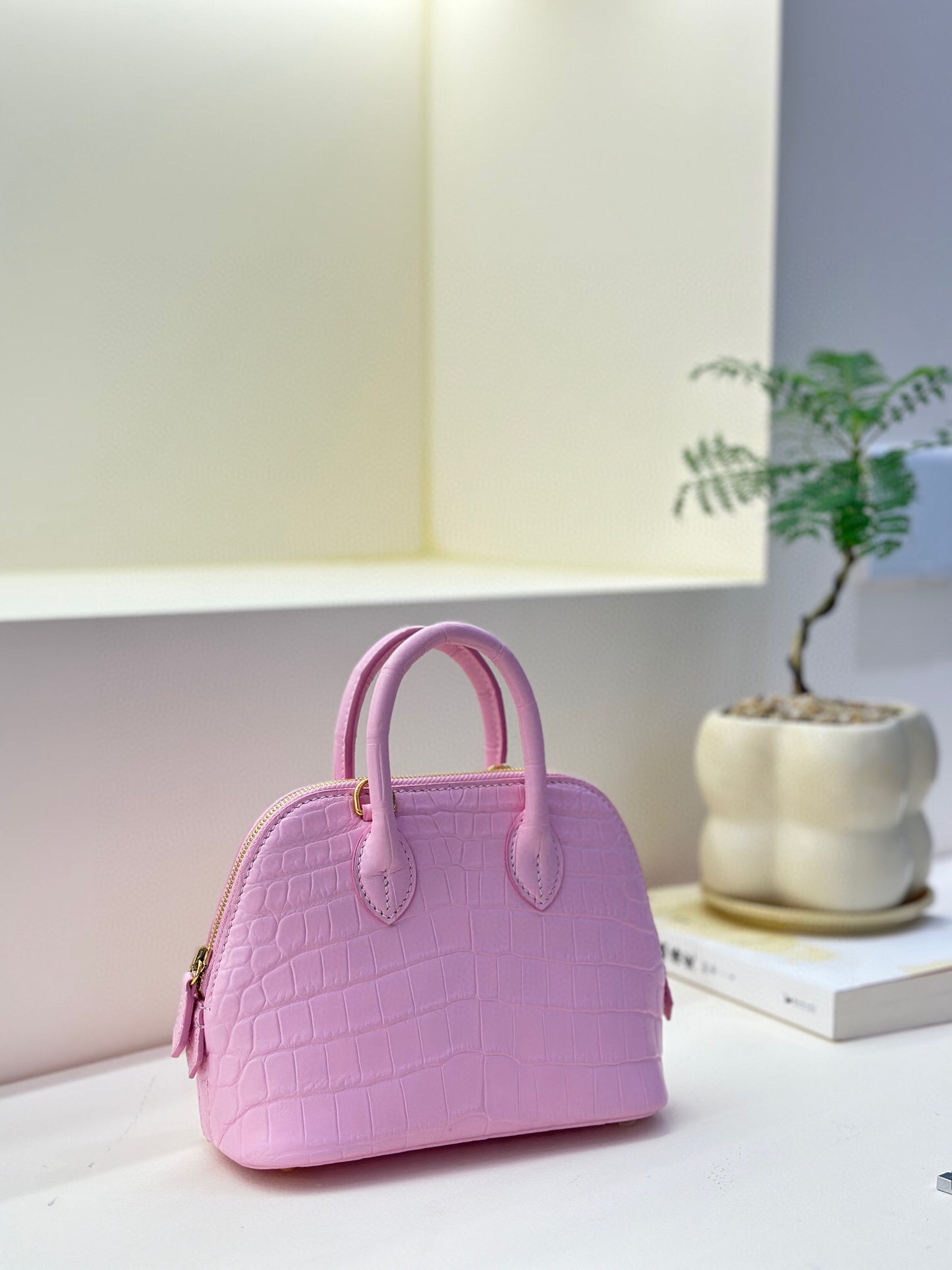 Womens Matte Genuine Crocodile Leather Shell Promennade Trapezoid Cross Body Bag Sakura Pollen