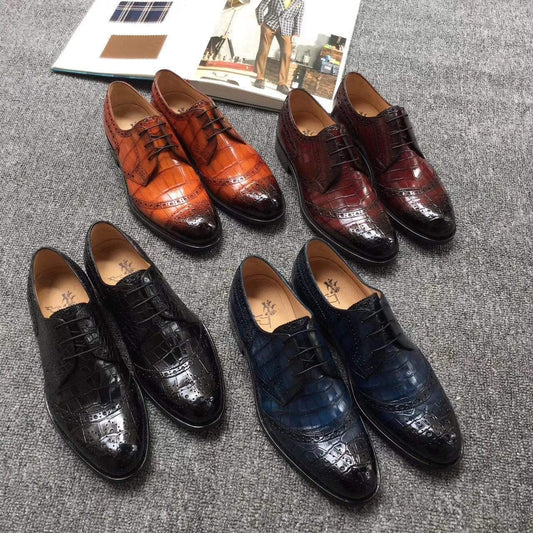 Crocodile Shoes Mens Crocodile Leather Brogue Wingtip Dress Slip On Dress Shoes