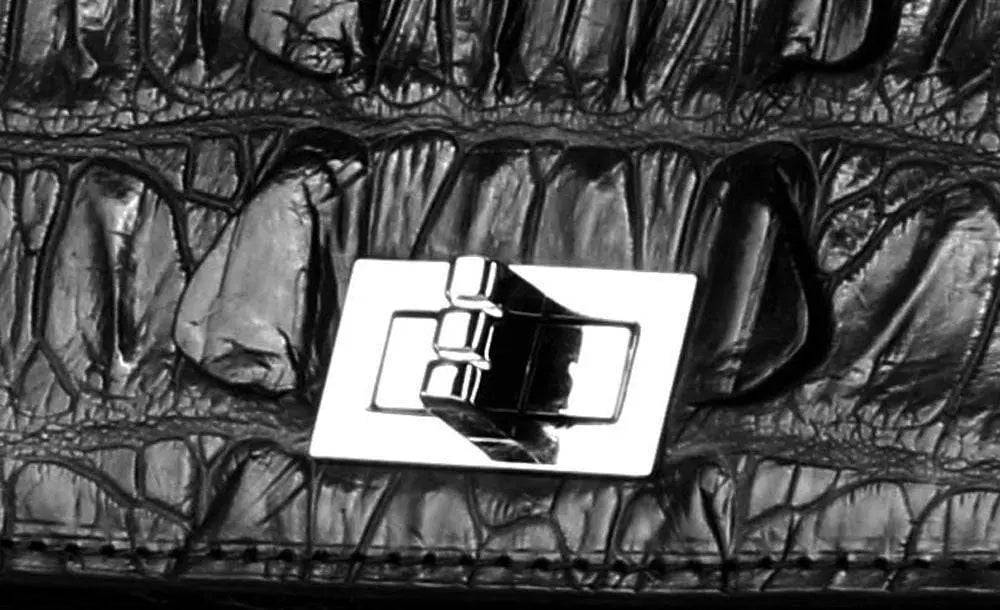 Bag: Women's Genuine Crocodile Leather Small Turn Lock Top Handle Shoulder Bag