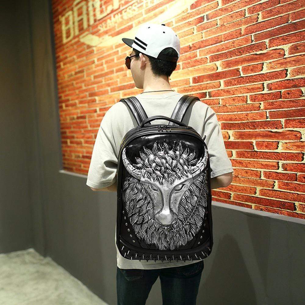 Cow Head 3D PU Leather Casual Laptop Backpack