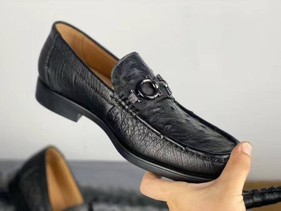 Scarpe in pelle di struzzo Mocassini slip-on in pelle di struzzo Neri