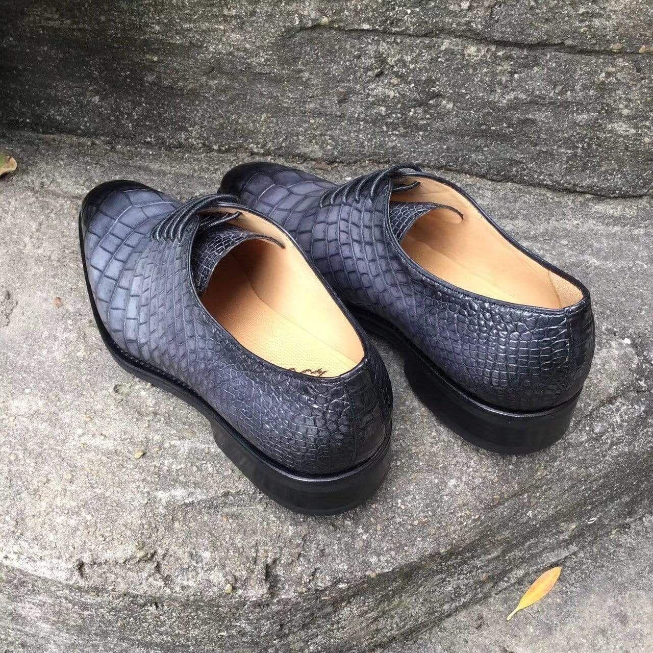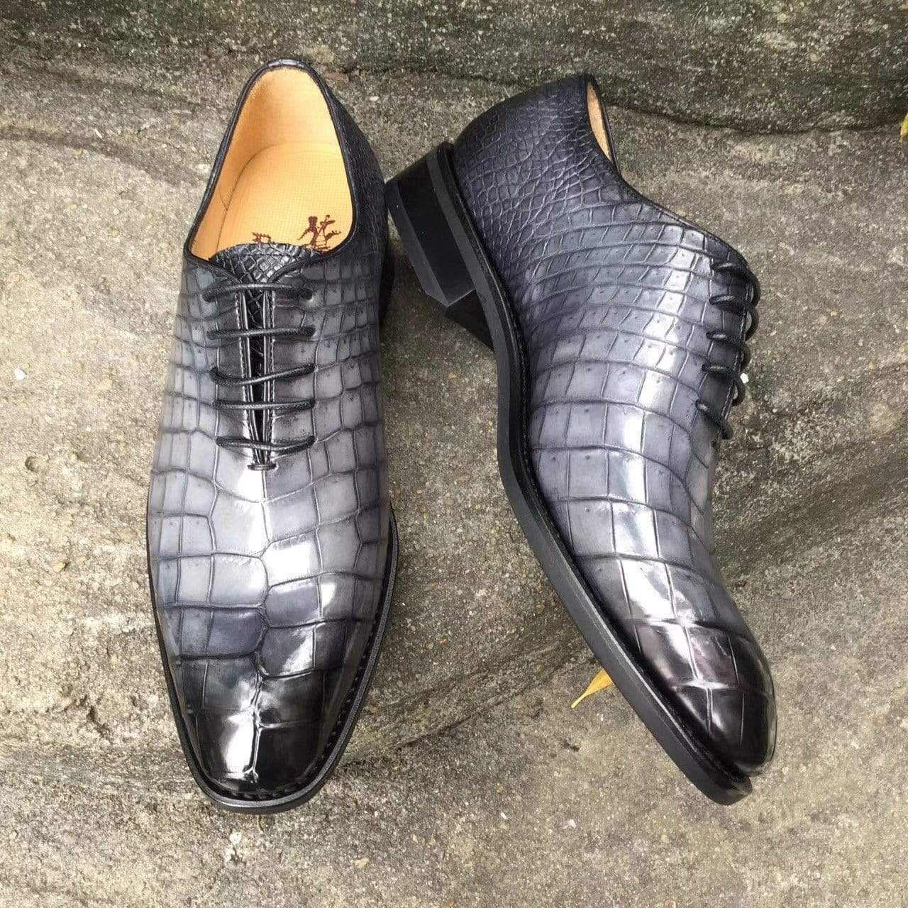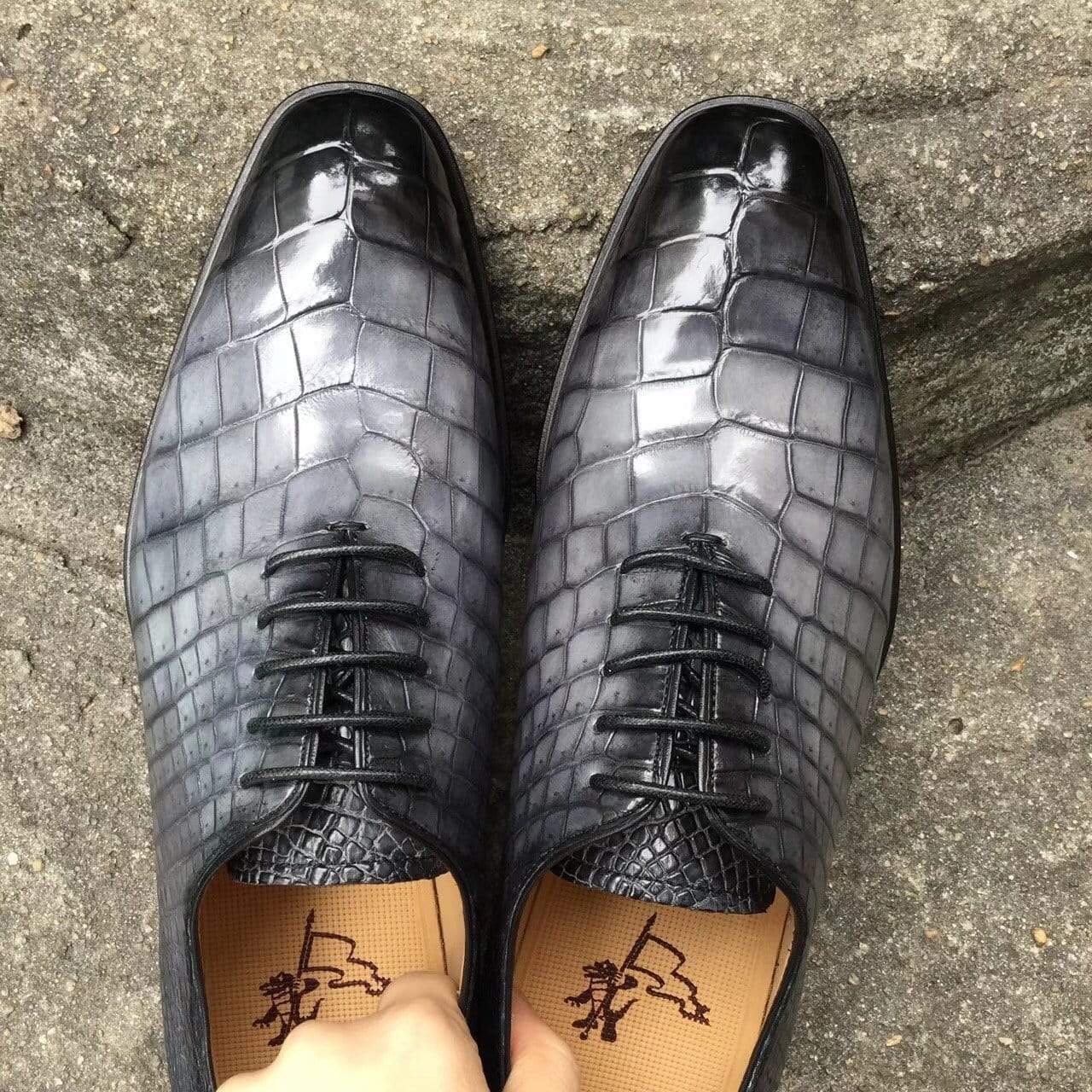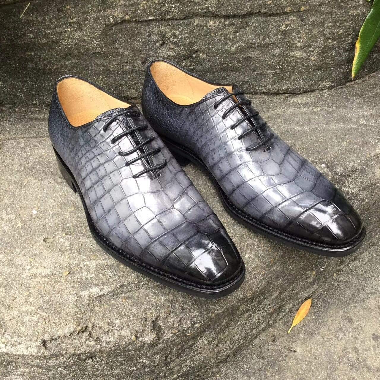 Scarpe da Uomo in Coccodrillo, Scarpe in Pelle di Coccodrillo Grigie, Scarpe Stringate, Suola Goodyear