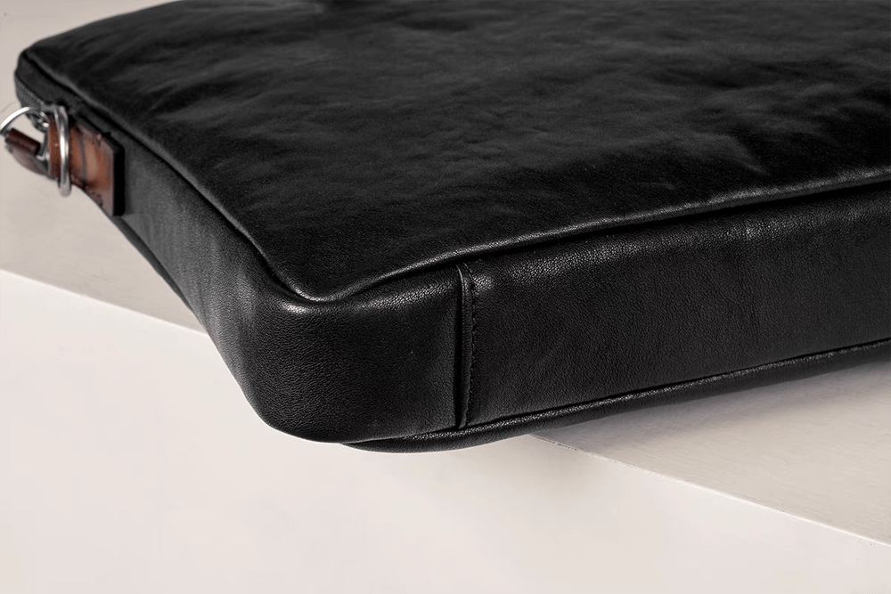 15inch Imported Calfskin Leather Laptop Briefcase Bag Classic Black