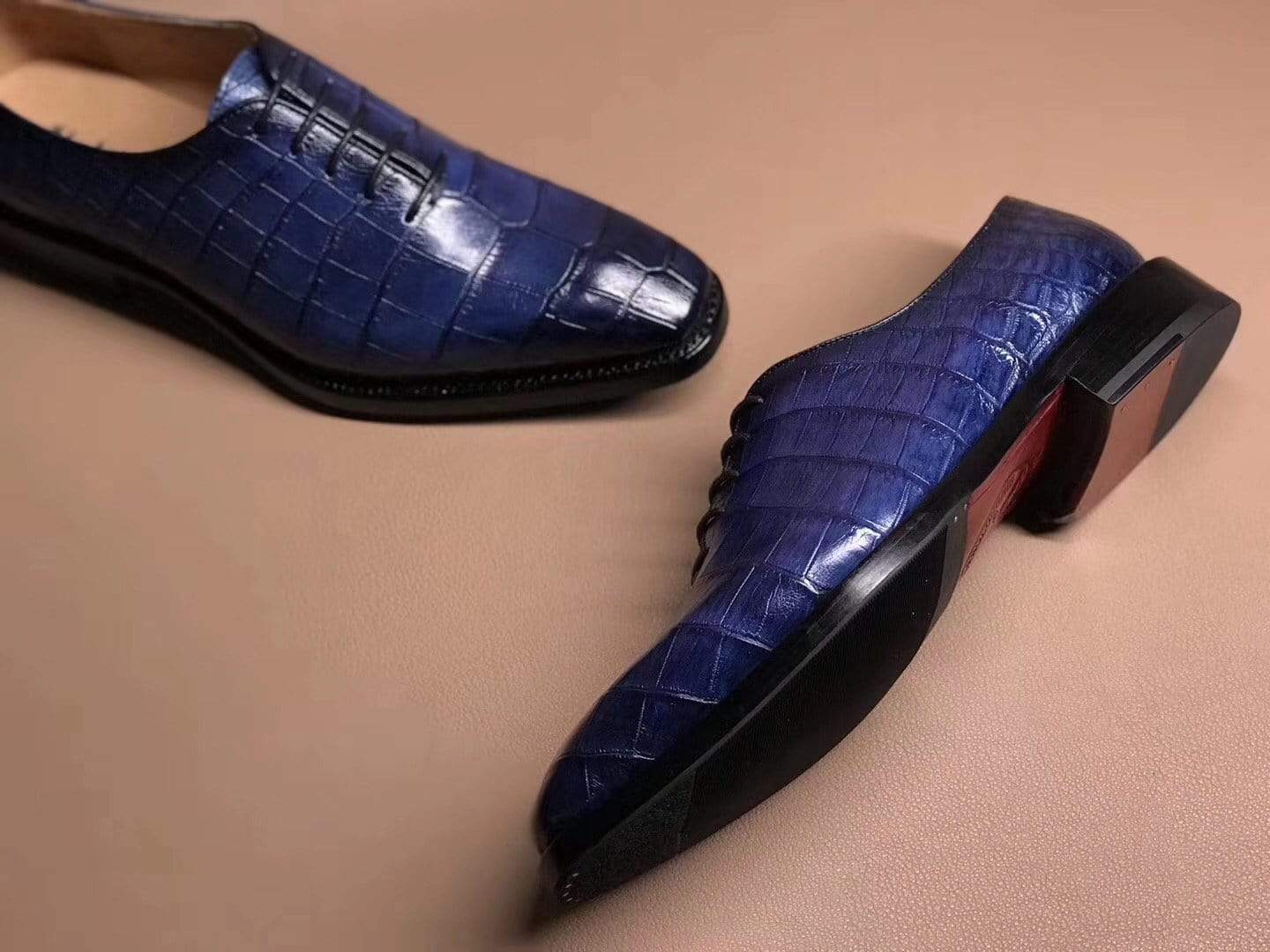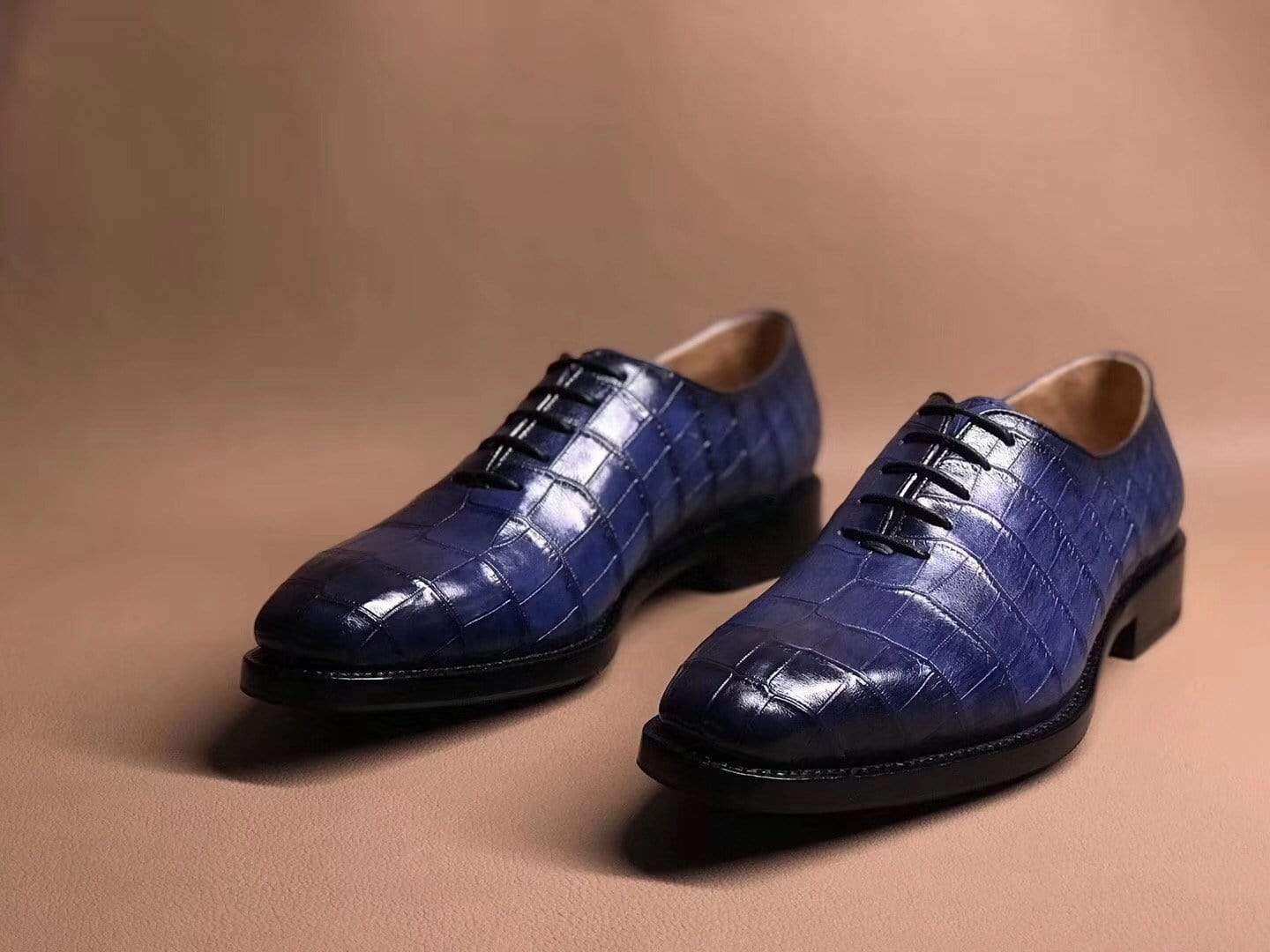 Crocodile Shoes Blue Crocodile Leather Lace Up Shoes
