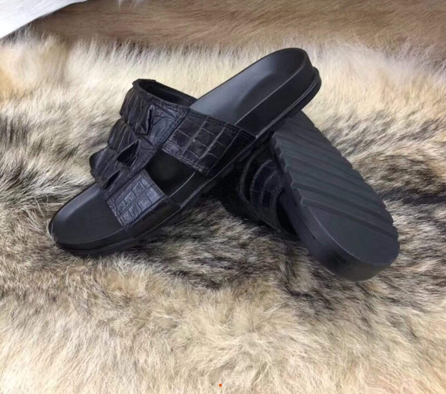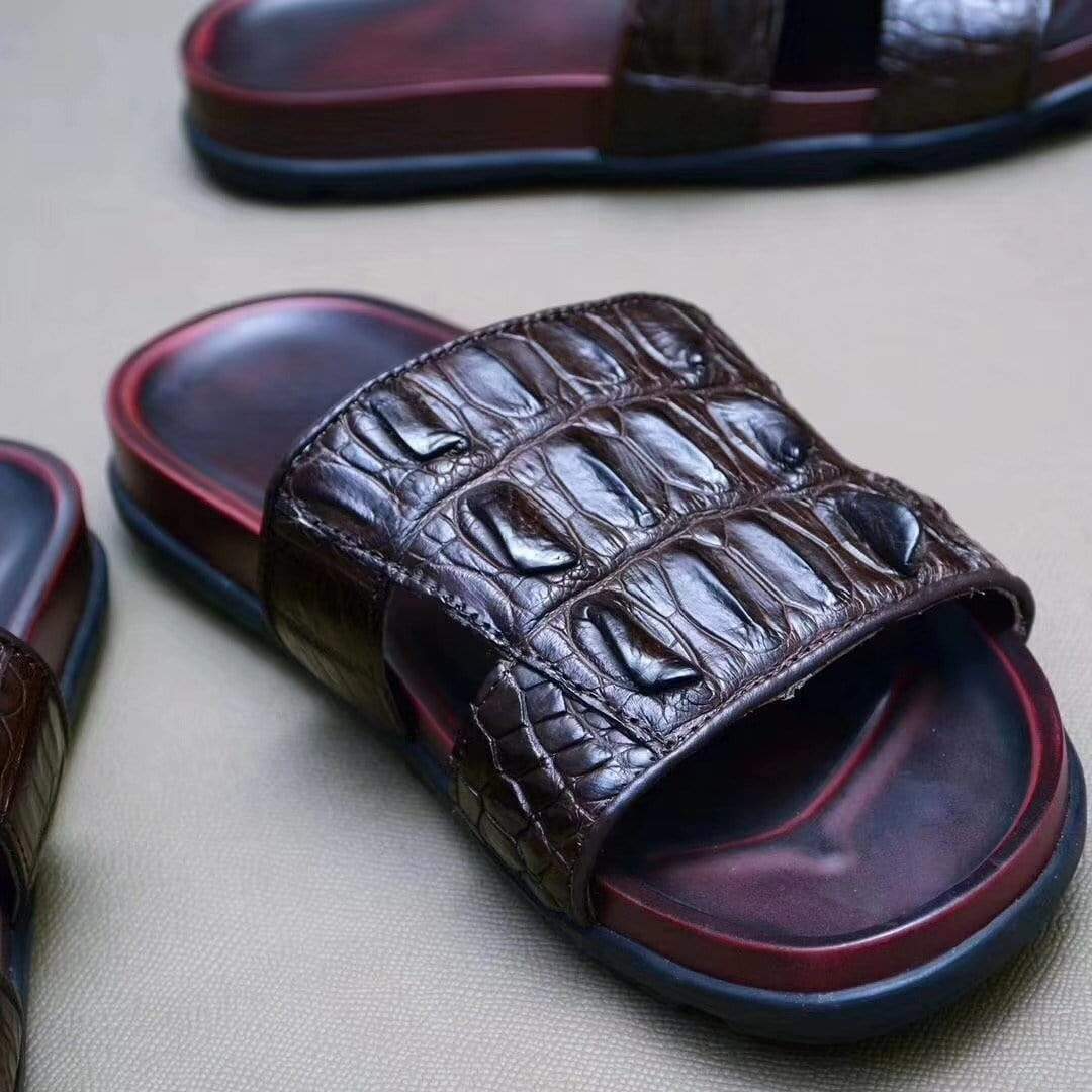 Crocodile Shoes Genuine Crocodile Bone Leather Mens Slipper
