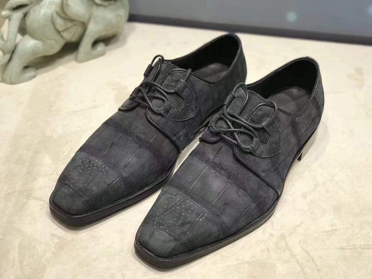 Sanded Genuine Crocodile Leather Penny Casual Business Brogue Shoes