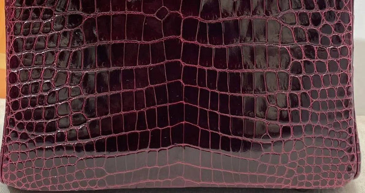 - Exotic beautiful 100% High Glossy Genuine Siamase Crocodile Skin Belly Leather with gunmetal hardware.