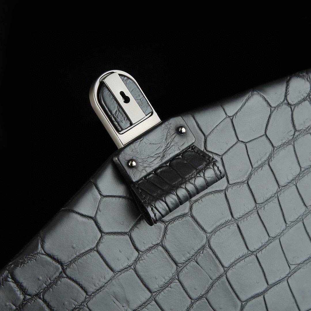 - Removable and adjustable crocodile skin leather shoulder strap .