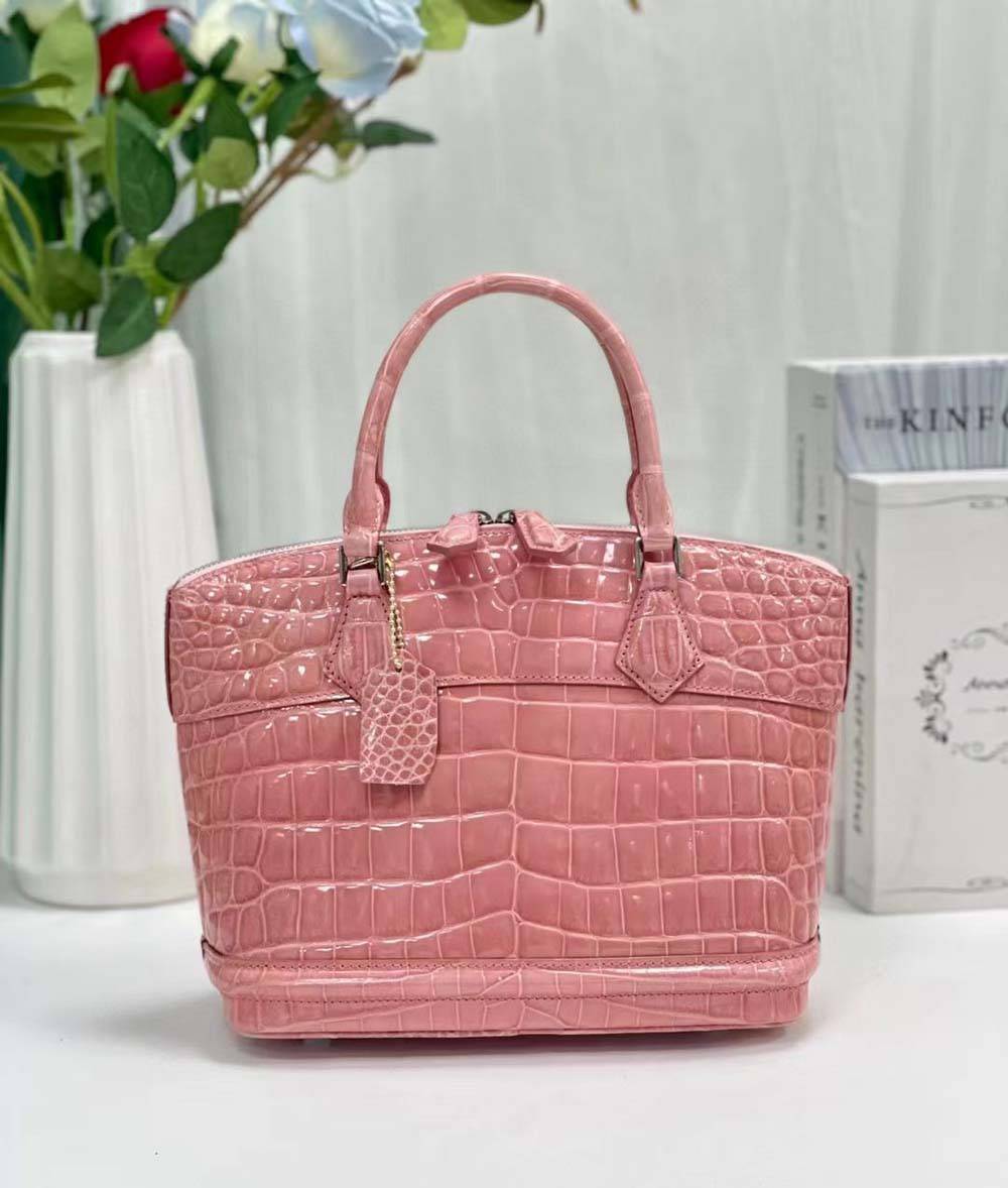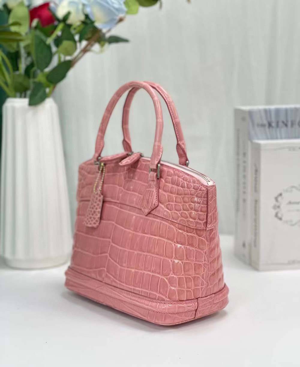 Women Shiny Crocodile Leather Top Handle Satchel Bag Rose Sakuras
