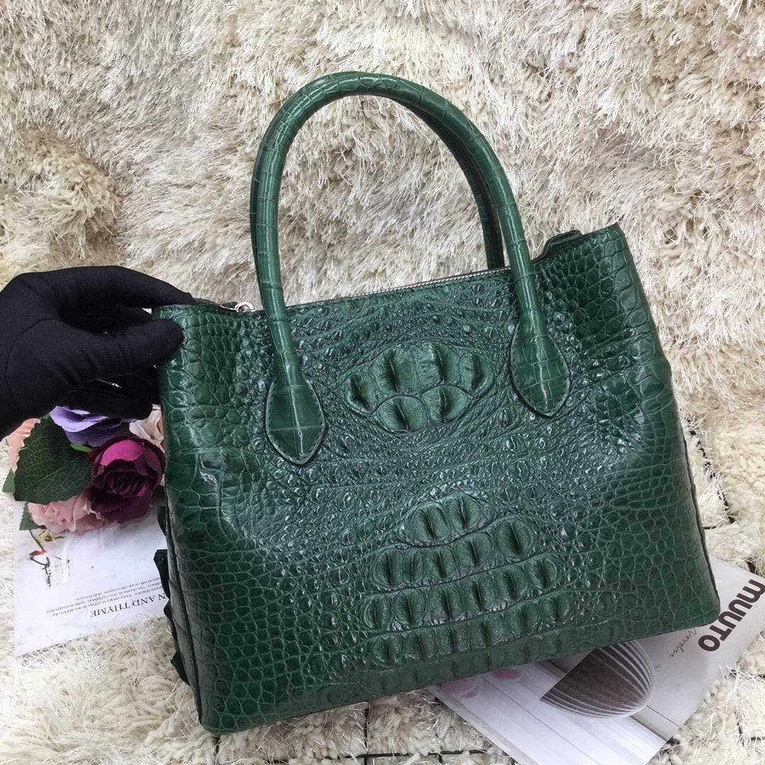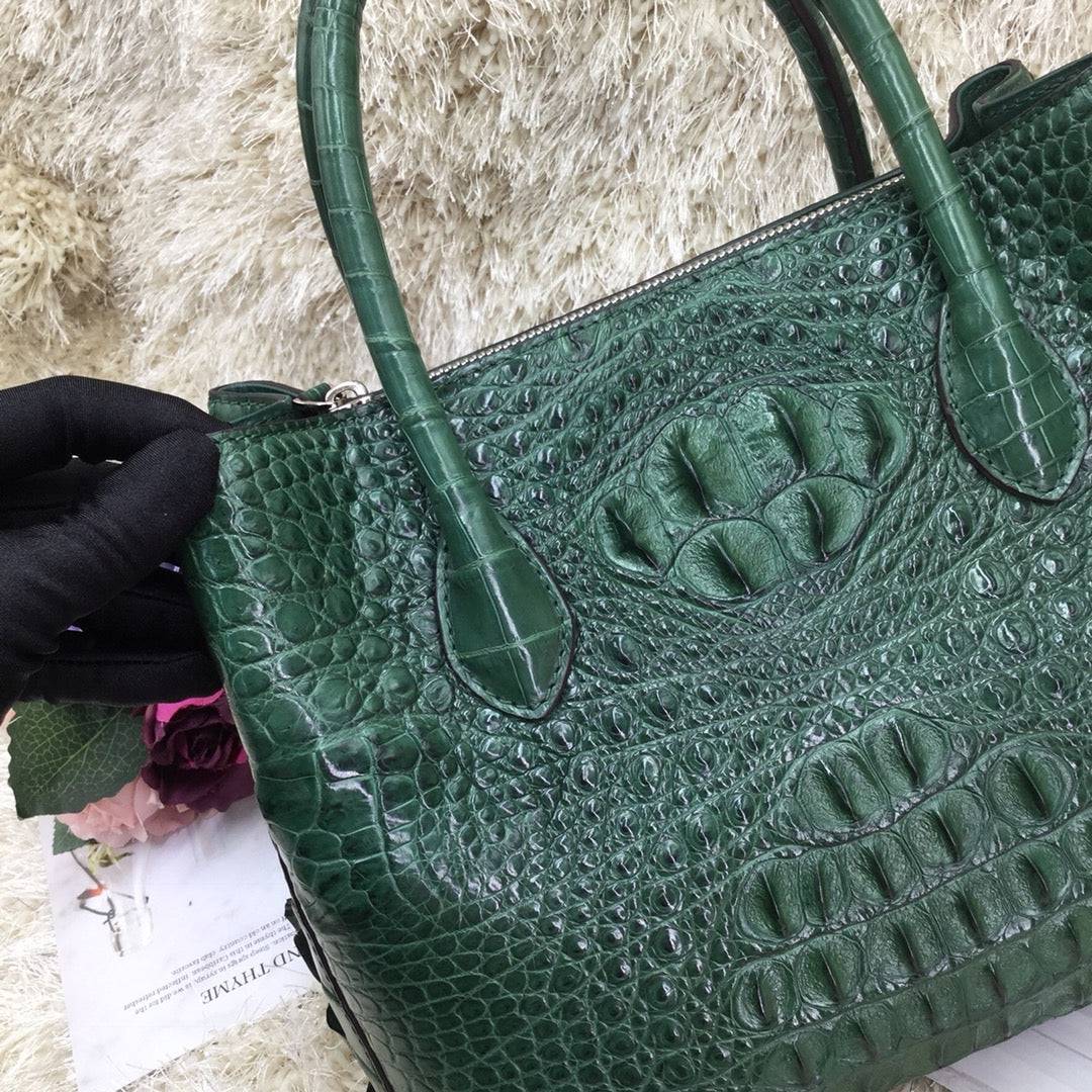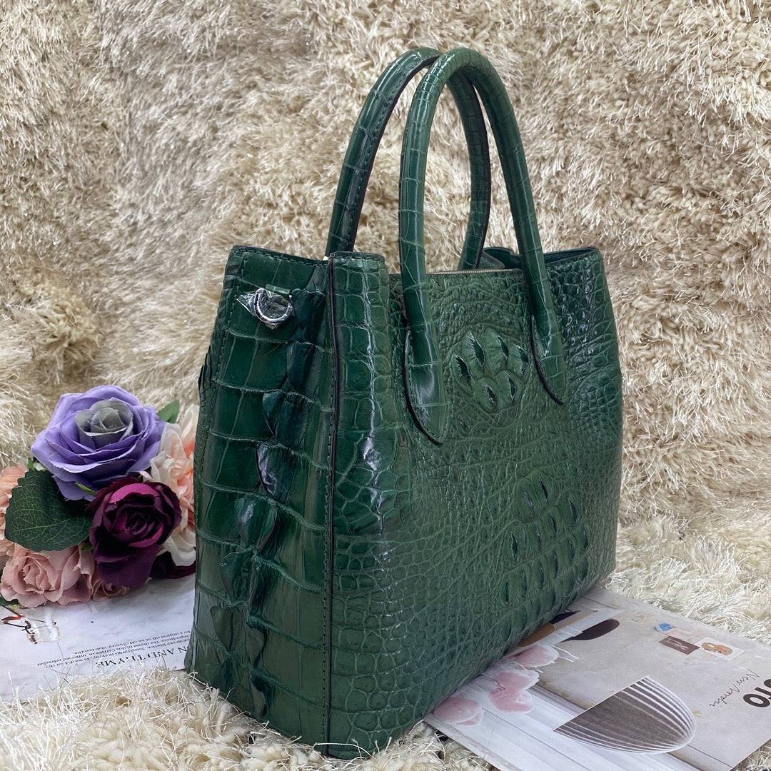 Womens Crocodile Skin Leather Satchel Bag 30cm Dark Green