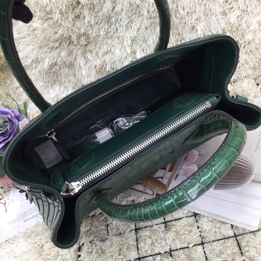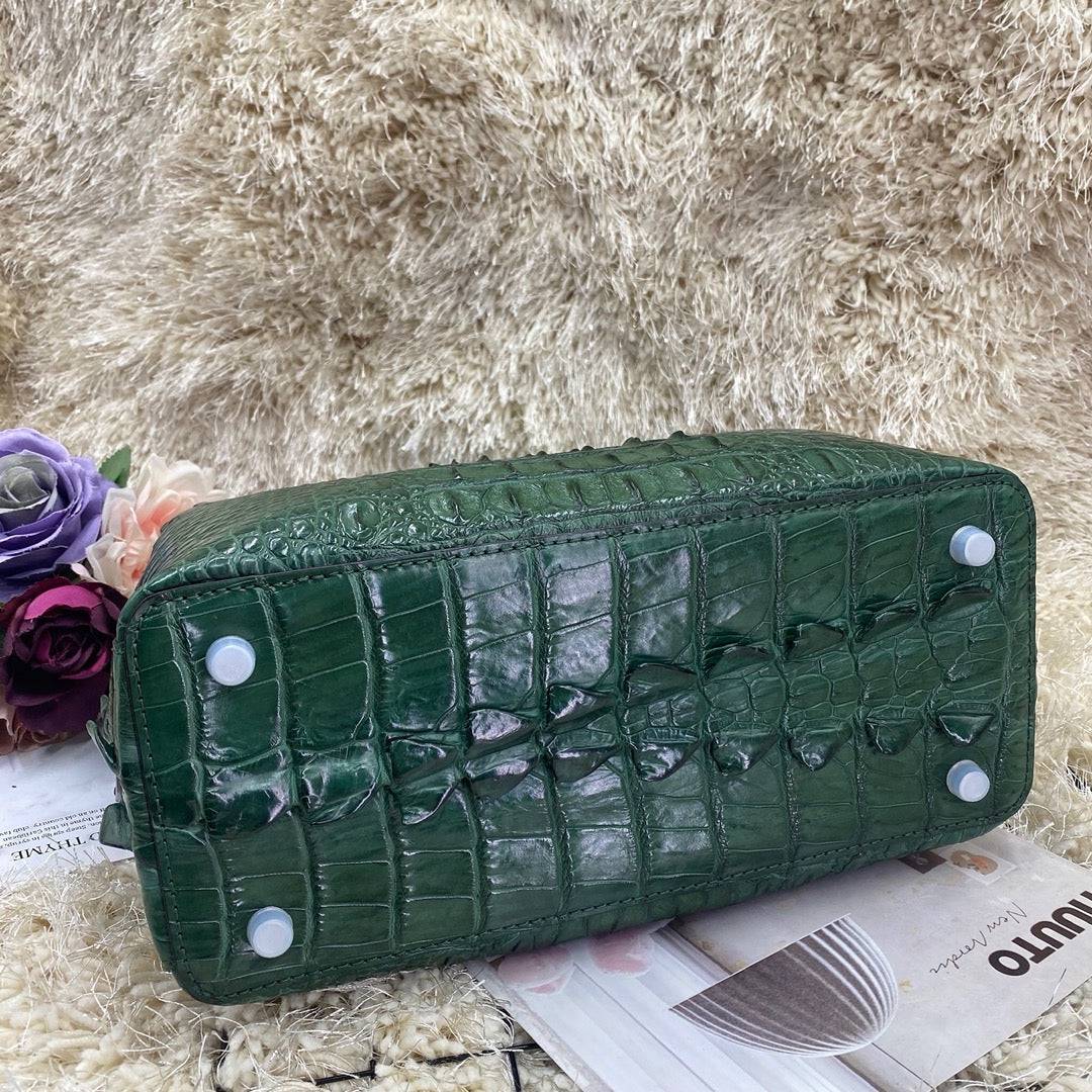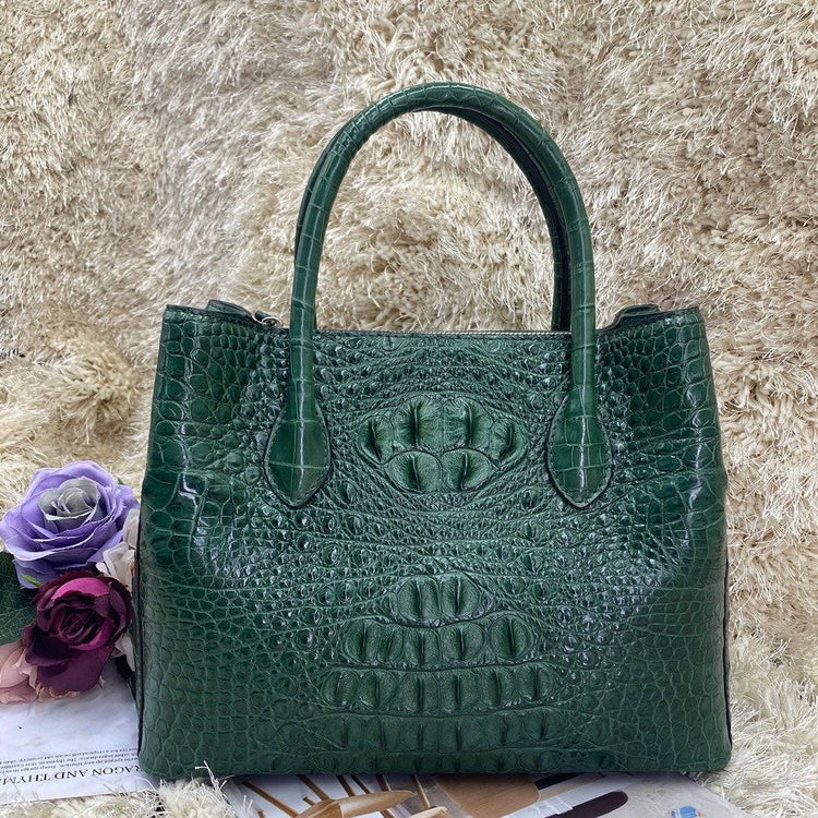 Womens Crocodile Skin Leather Satchel Bag 30cm Dark Green