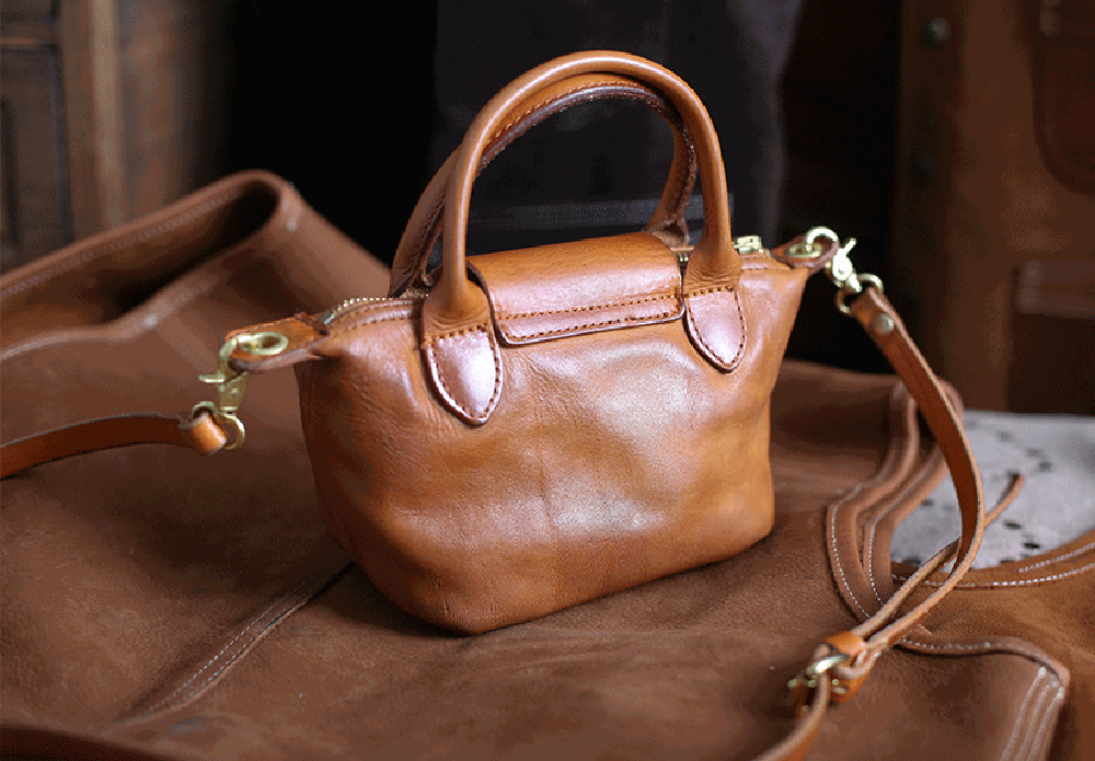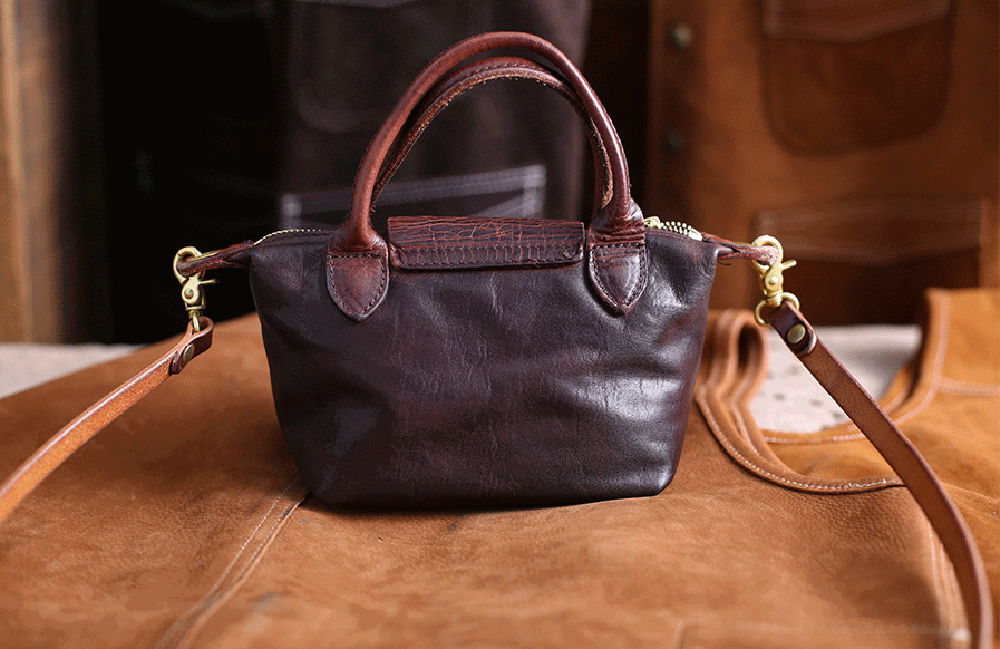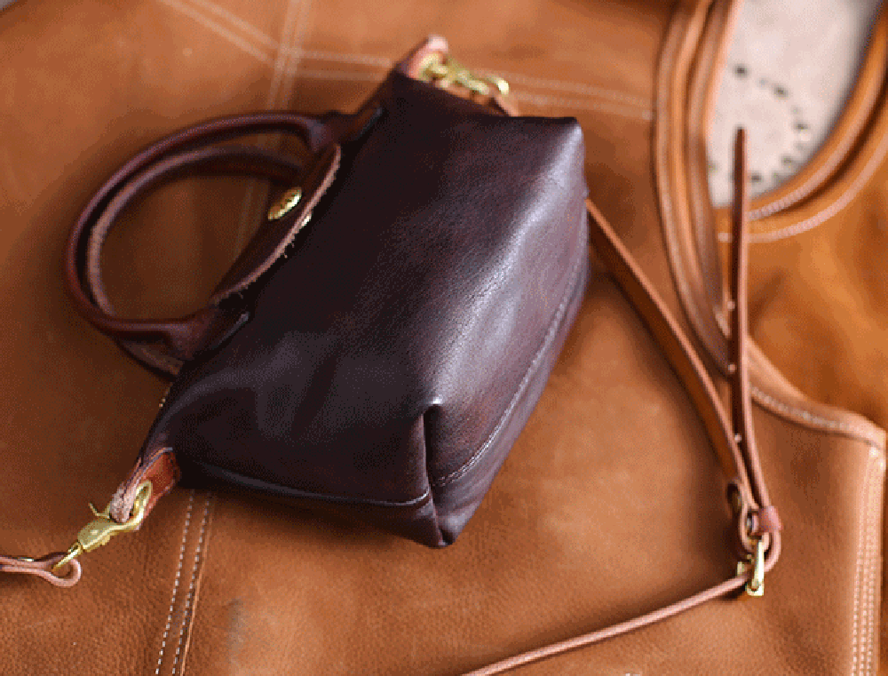 Womens Vintage Horse Skin Leather Small Top Handle Cross Body Shoulder Bag