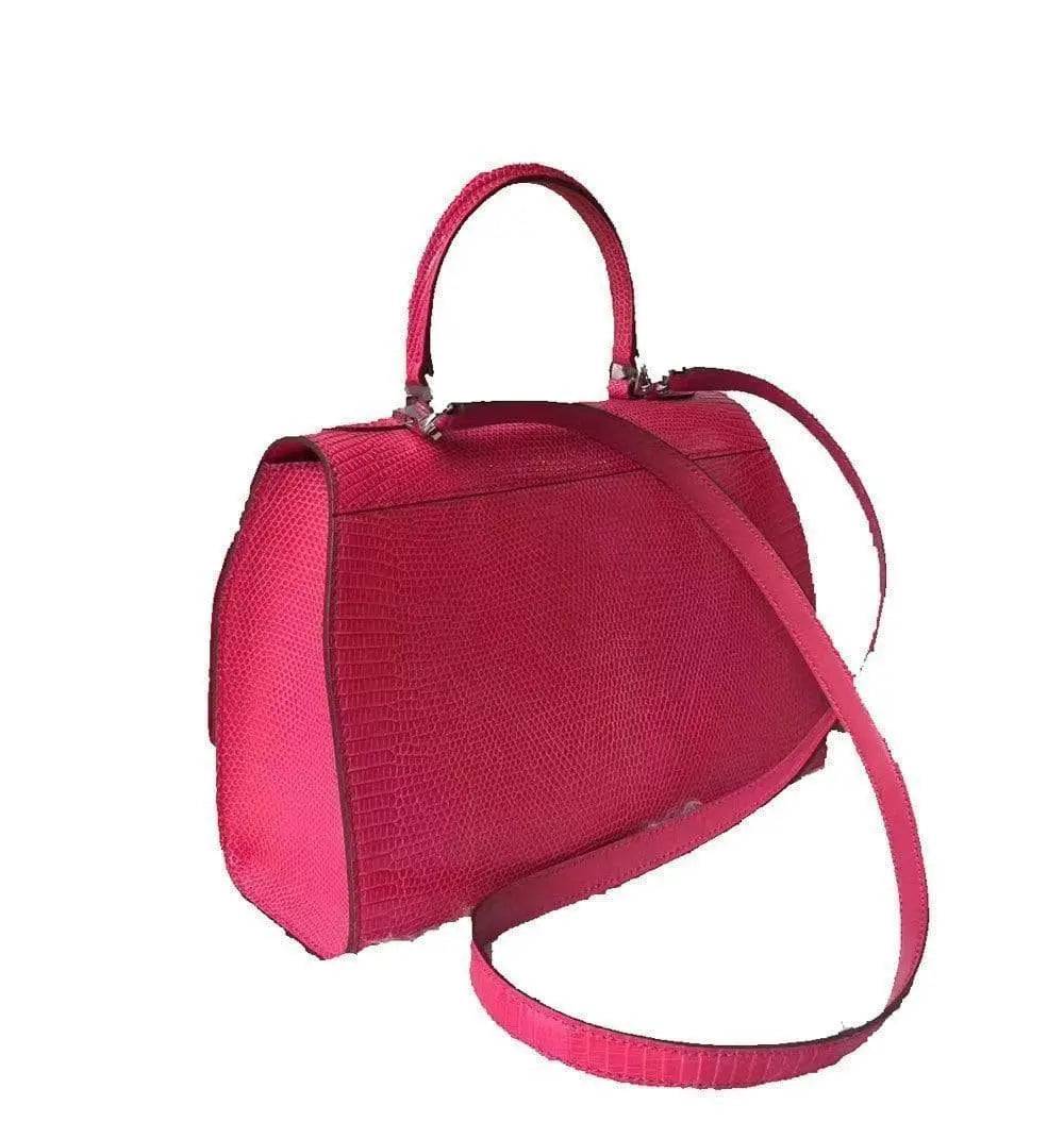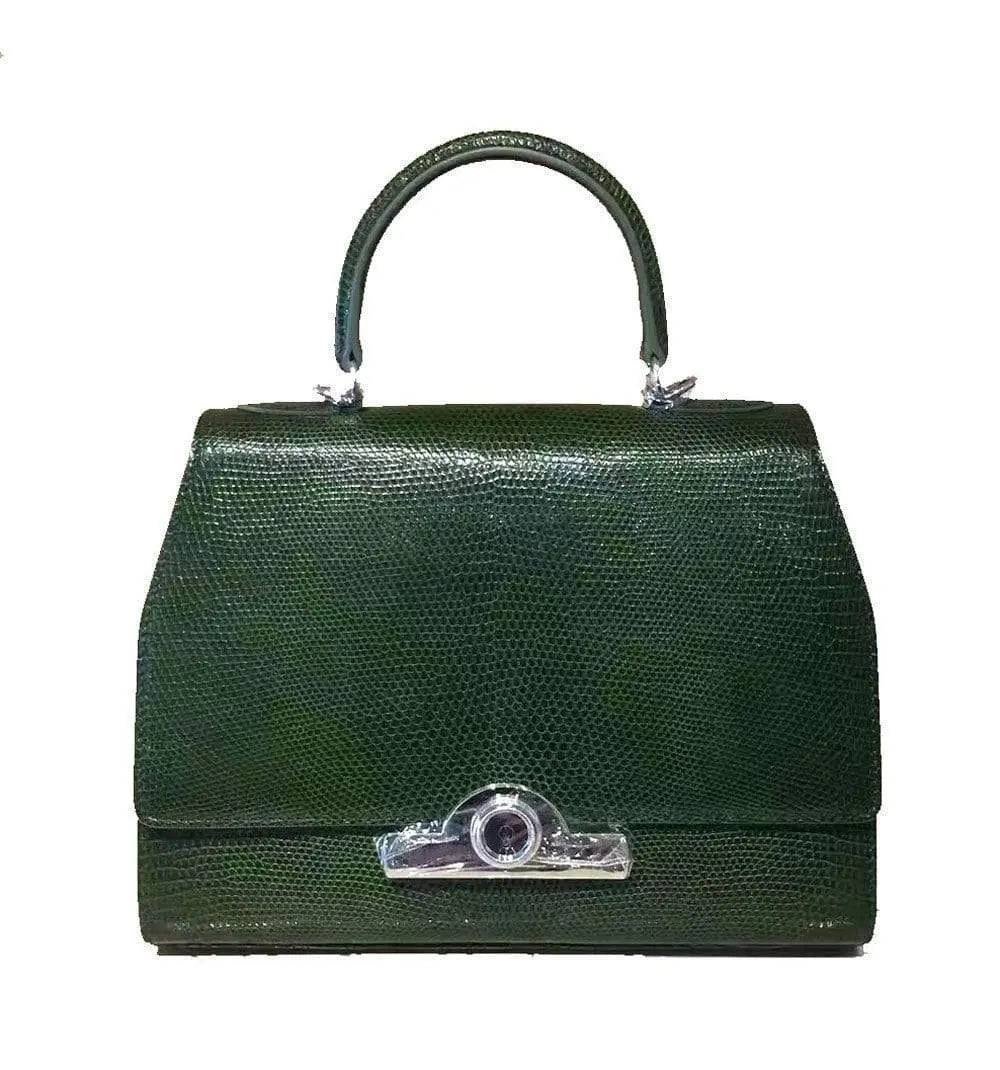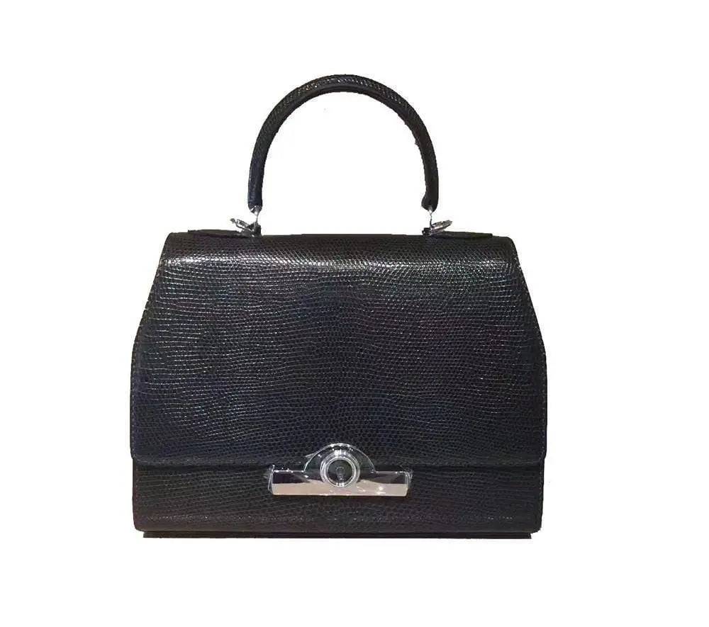 Womens Lizard Leather Top Handle Satchel Bag