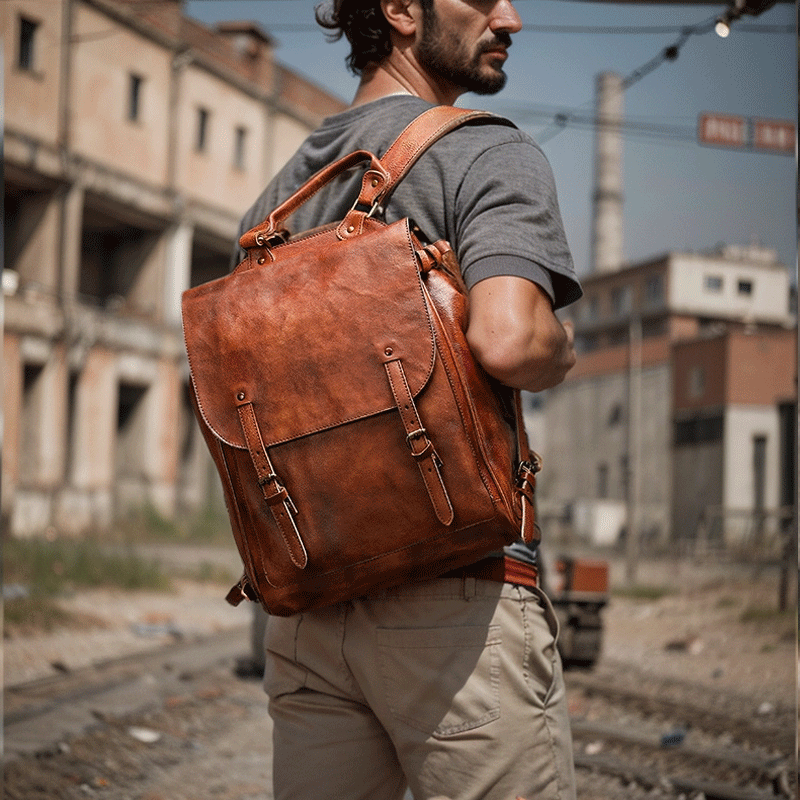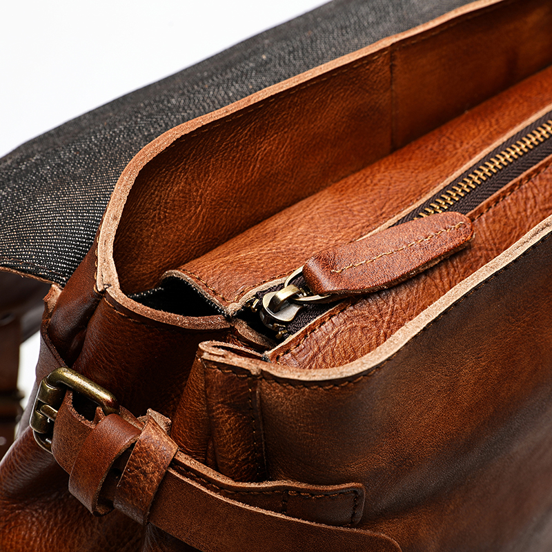 Adjustable vintage leather shoulder strap,can put 15"laptop in.