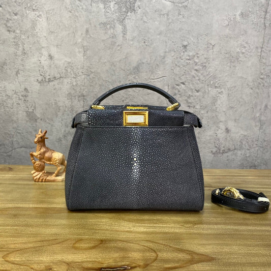 Womens Genuine Stingray Skin Leathe Túi Tote Shopper Màu Đen
